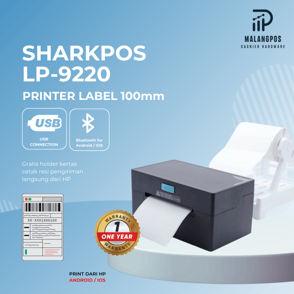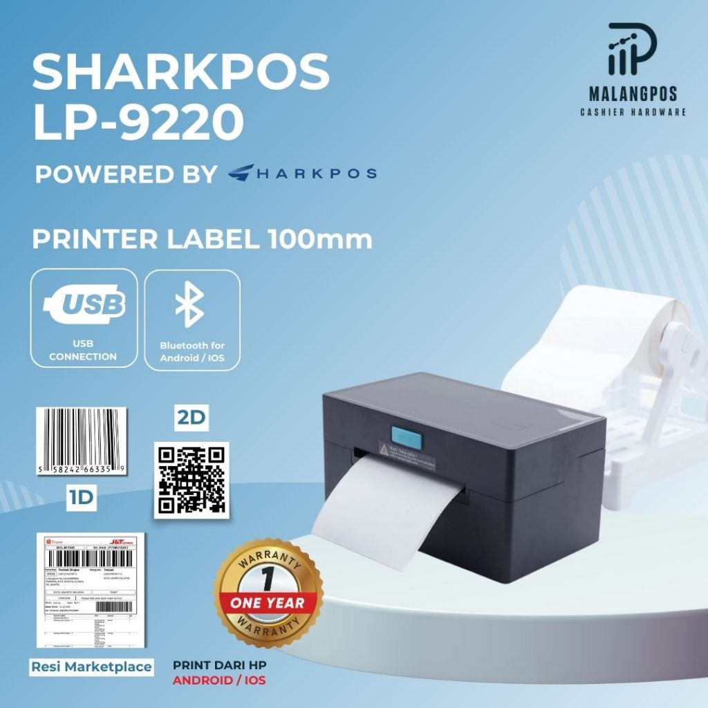 Printer Thermal Barcode Resi Bluetooth USB Sharkpos LP 9220 LP9220 100 mm Label Resi A6 9220