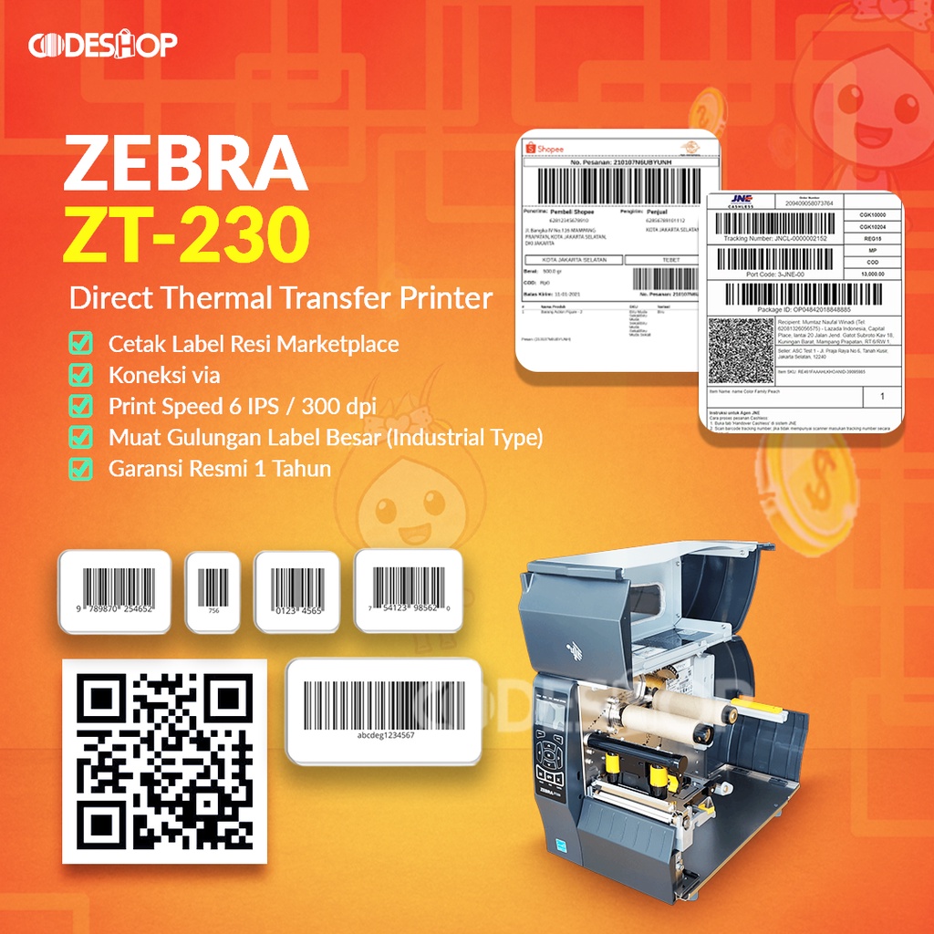 Printer Barcode Zebra ZT230 300 dpi Industrial Port USB