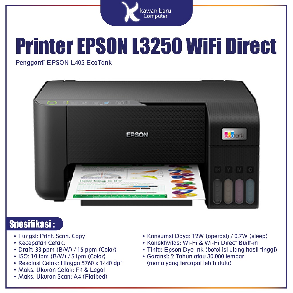 Printer Epson L3251 Pengganti Print L3250 - Print Scan Copy Wireless Ecotank Printer All-In-One Garansi Resmi