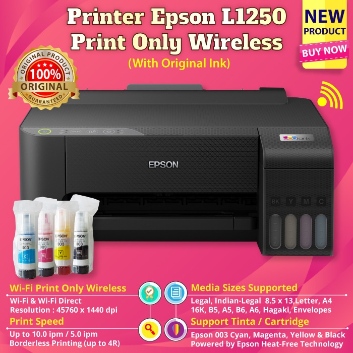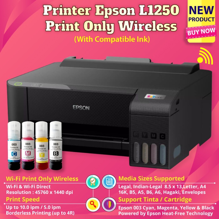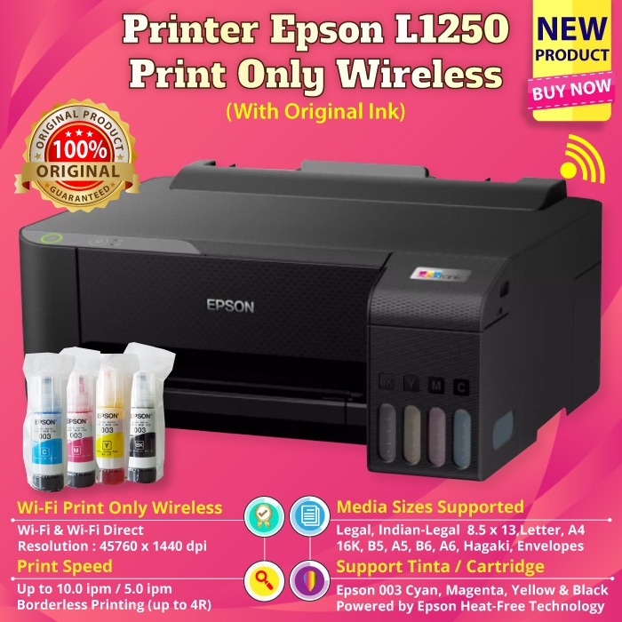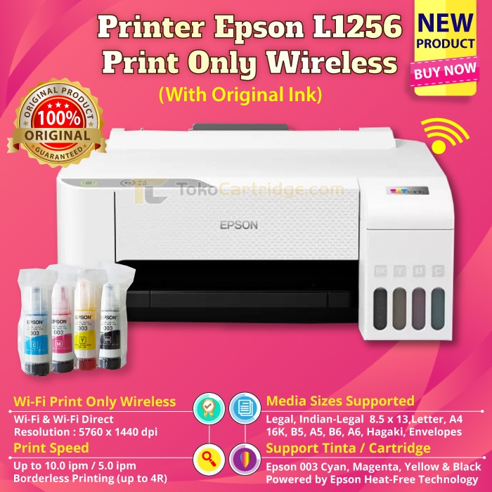 Printer Epson EcoTank L1256 A4 Wi-Fi Print Only Wireless Ink Tank White Pengganti Epson L1250 Black