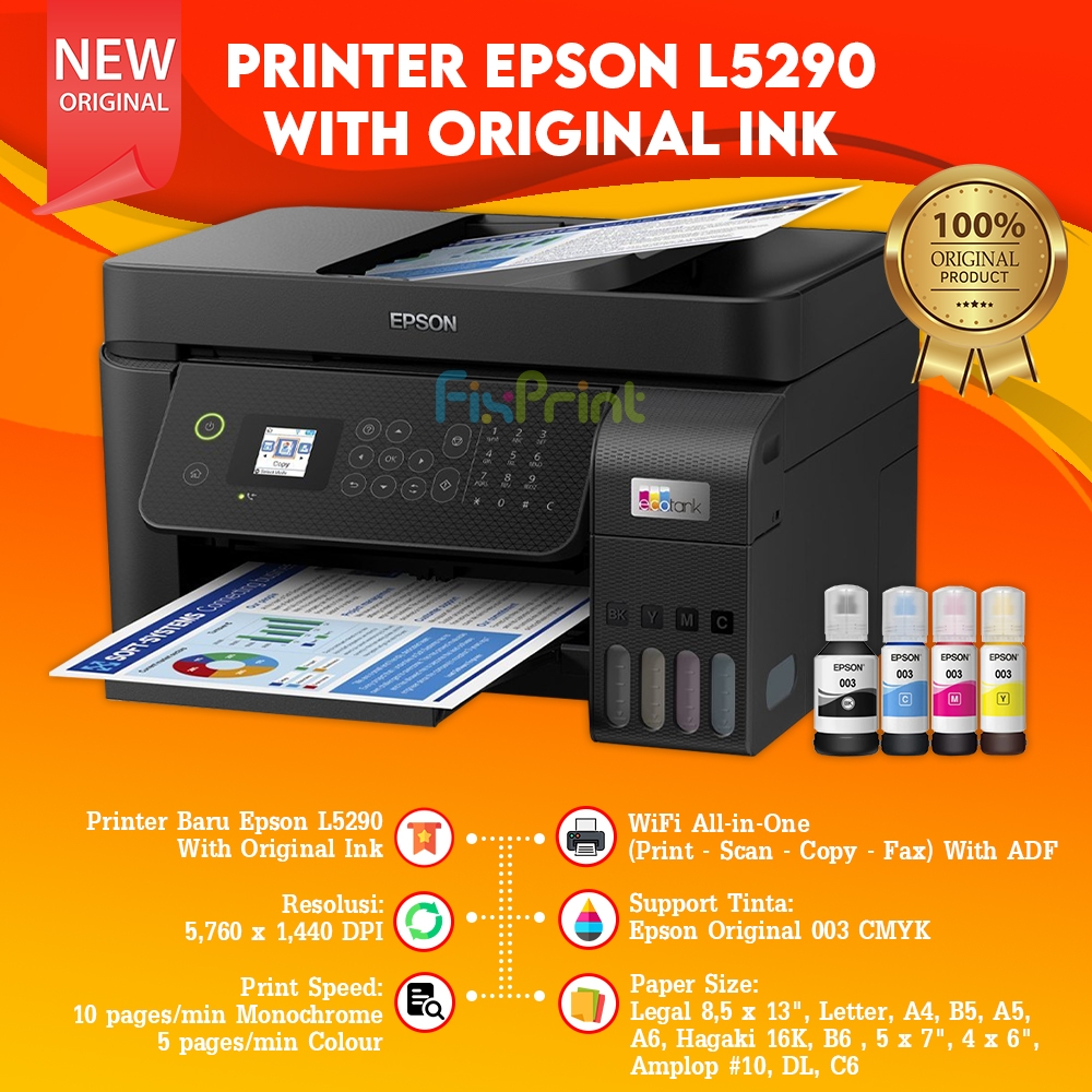 Printer Epson EcoTank L5290 L5296 Print Scan Copy WiFi ADF All in One / L3251 All In One Wifi (Print Scan Copy Wireless) With Original Ink