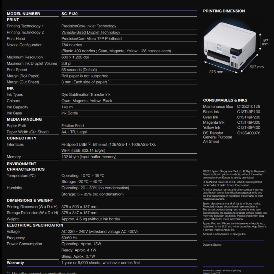Printer Epson SureColor SC F130 Dye Sublimation Textile Printer Epson