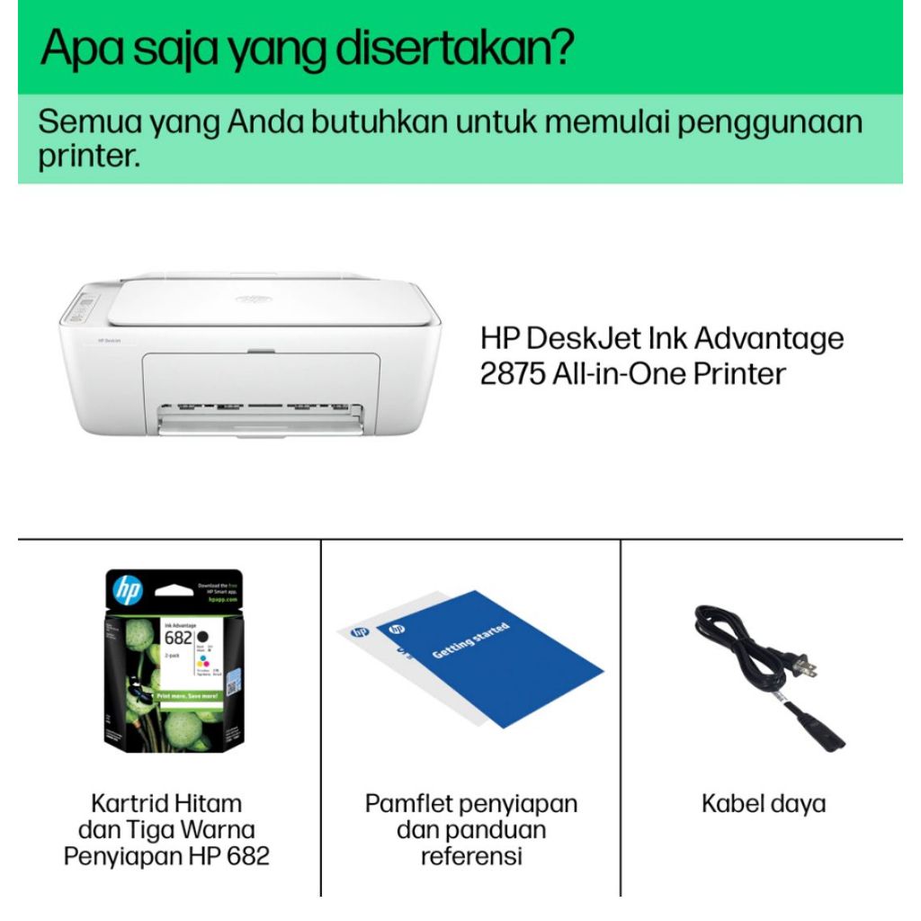 Printer HP 2875 Deskjet Print Scan Copy WiFi Cartridge Include TInta HP 682 Black Color ( Pengganti Printer HP Deskjet 2775)