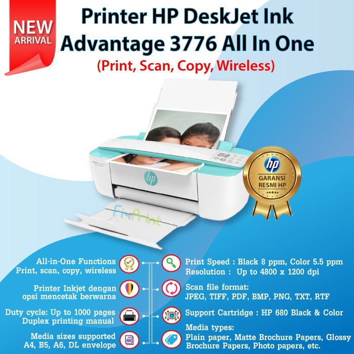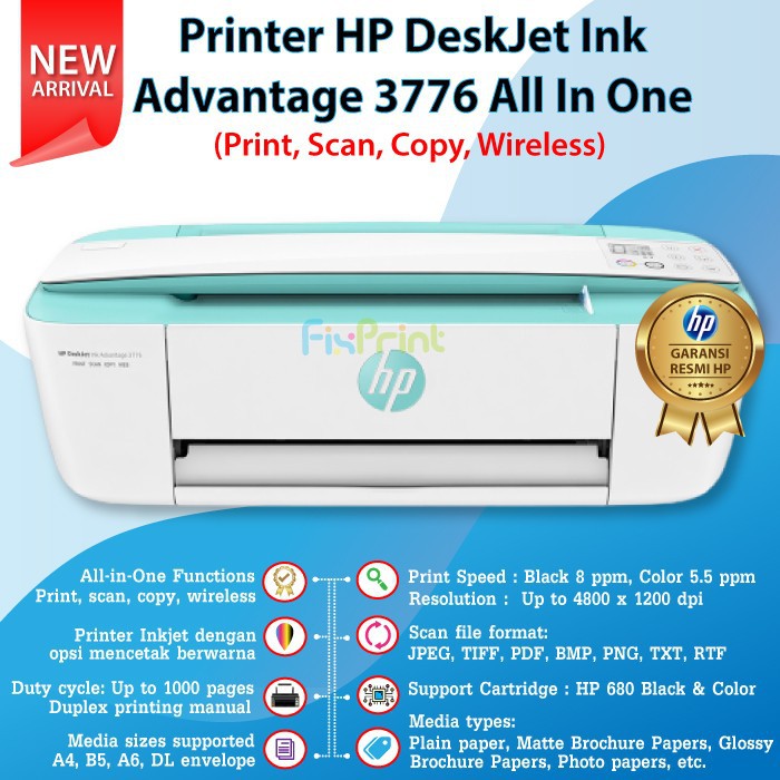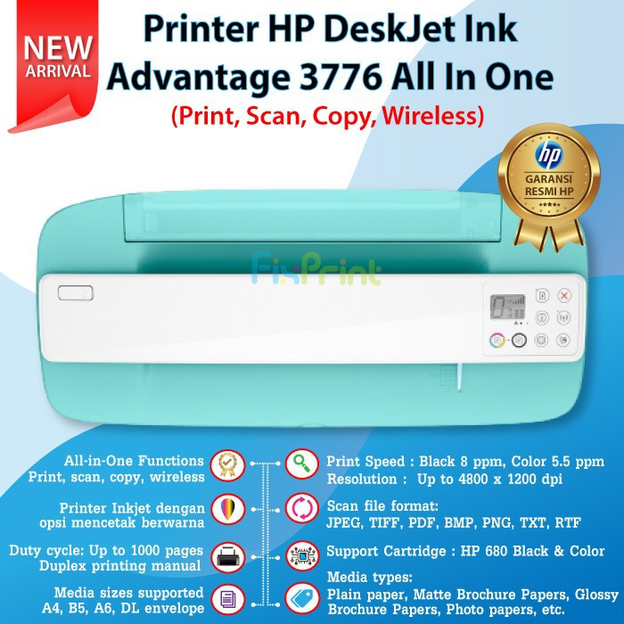 Printer HP DeskJet Ink Advantage 3776 Print Scan Copy Wireless FPJNew94