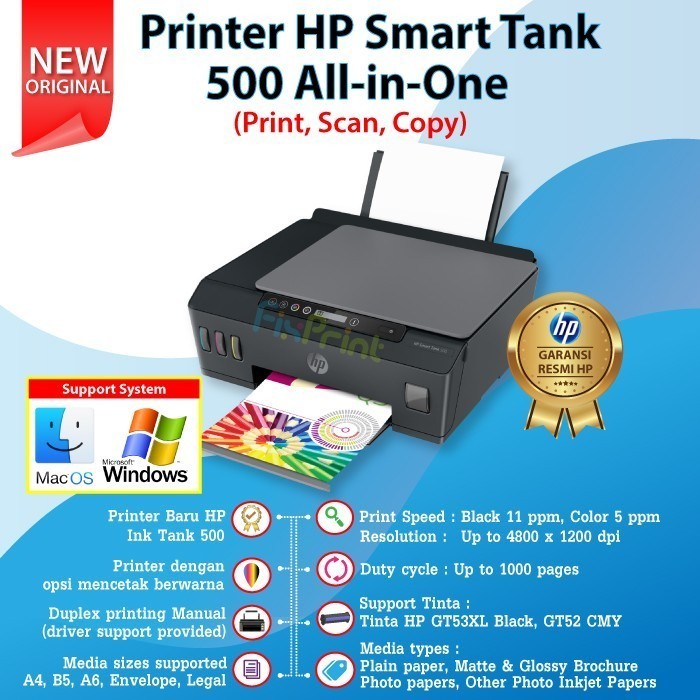 Printer Hp Smart Tank 500 Print Scan Copy 4Sr29A Tinta Hp Gt53 Gt52 Best