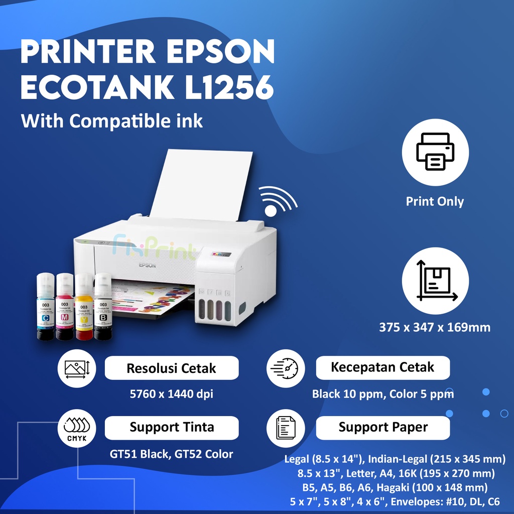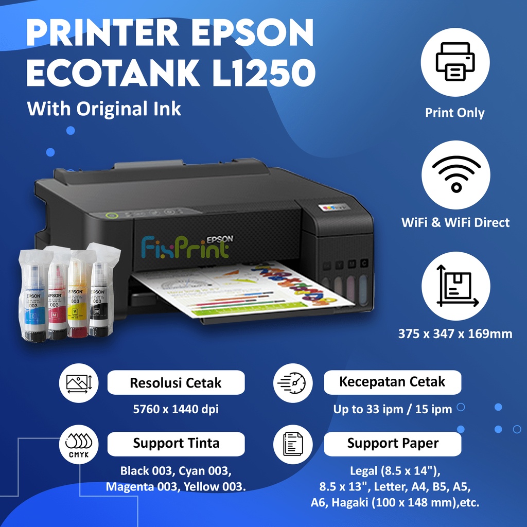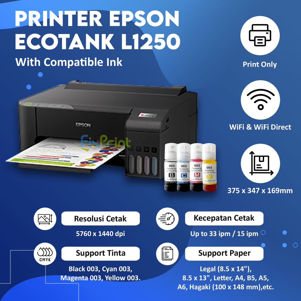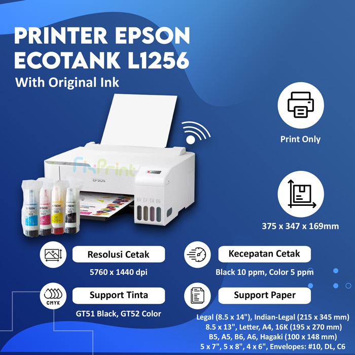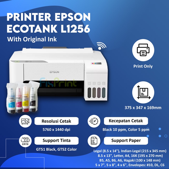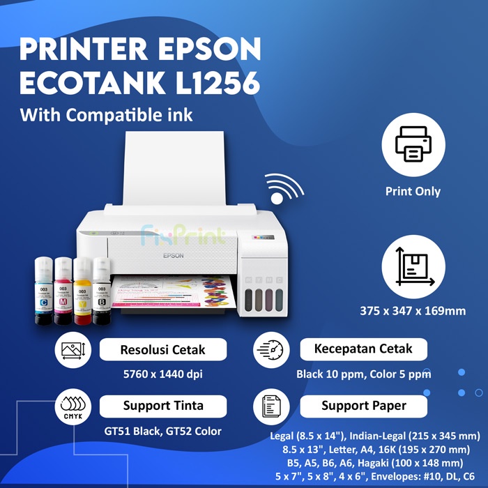 Printer Ink Tank EcoTank Epson L1256 / L1250 WiFi White Wireless Print A4 Infus Pengganti L1210