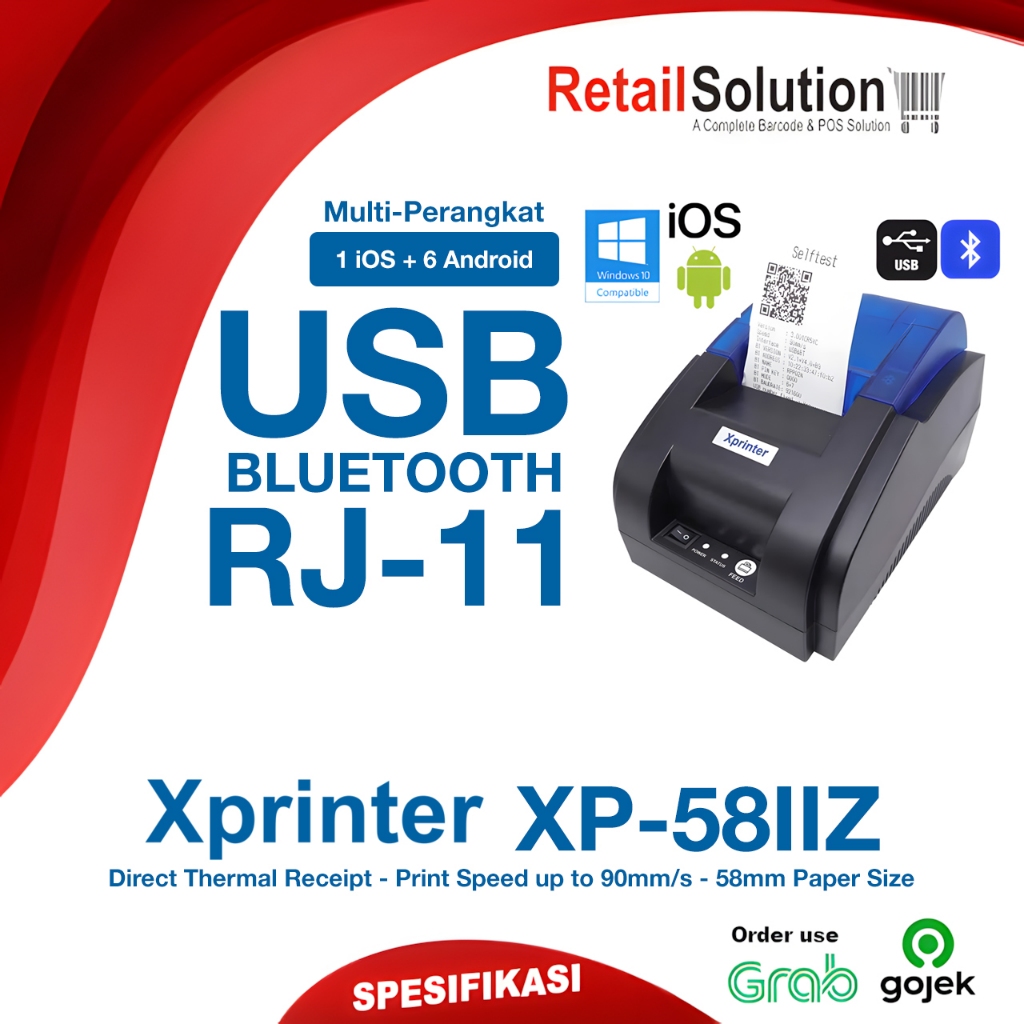 Printer Kasir Thermal RJ11 Bluetooth - Xprinter XP58IIZ XP-58IIZ XP58