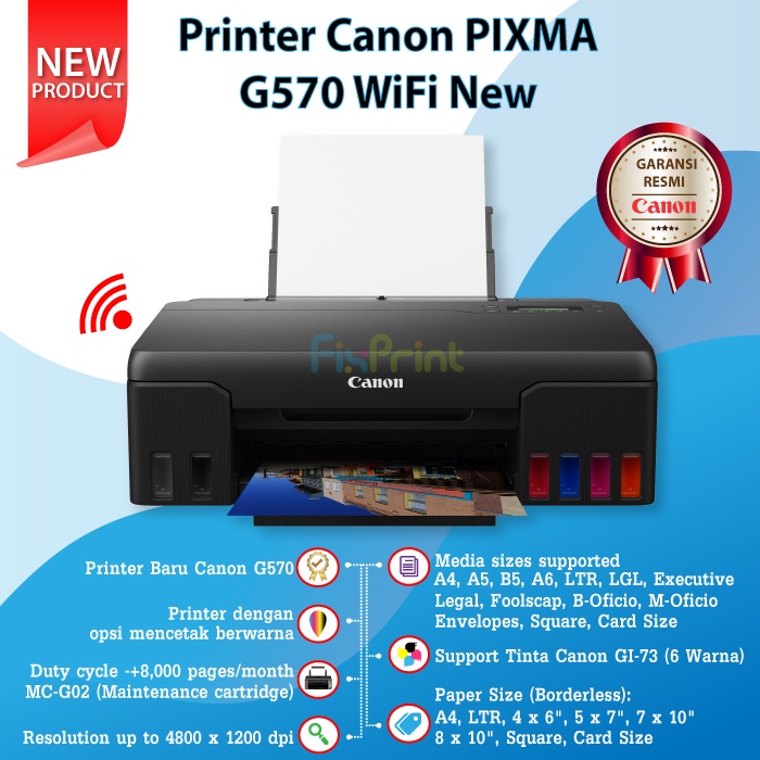 Printer PIXMA G570 570 Printer Photo InkTank 6 Warna Wireless