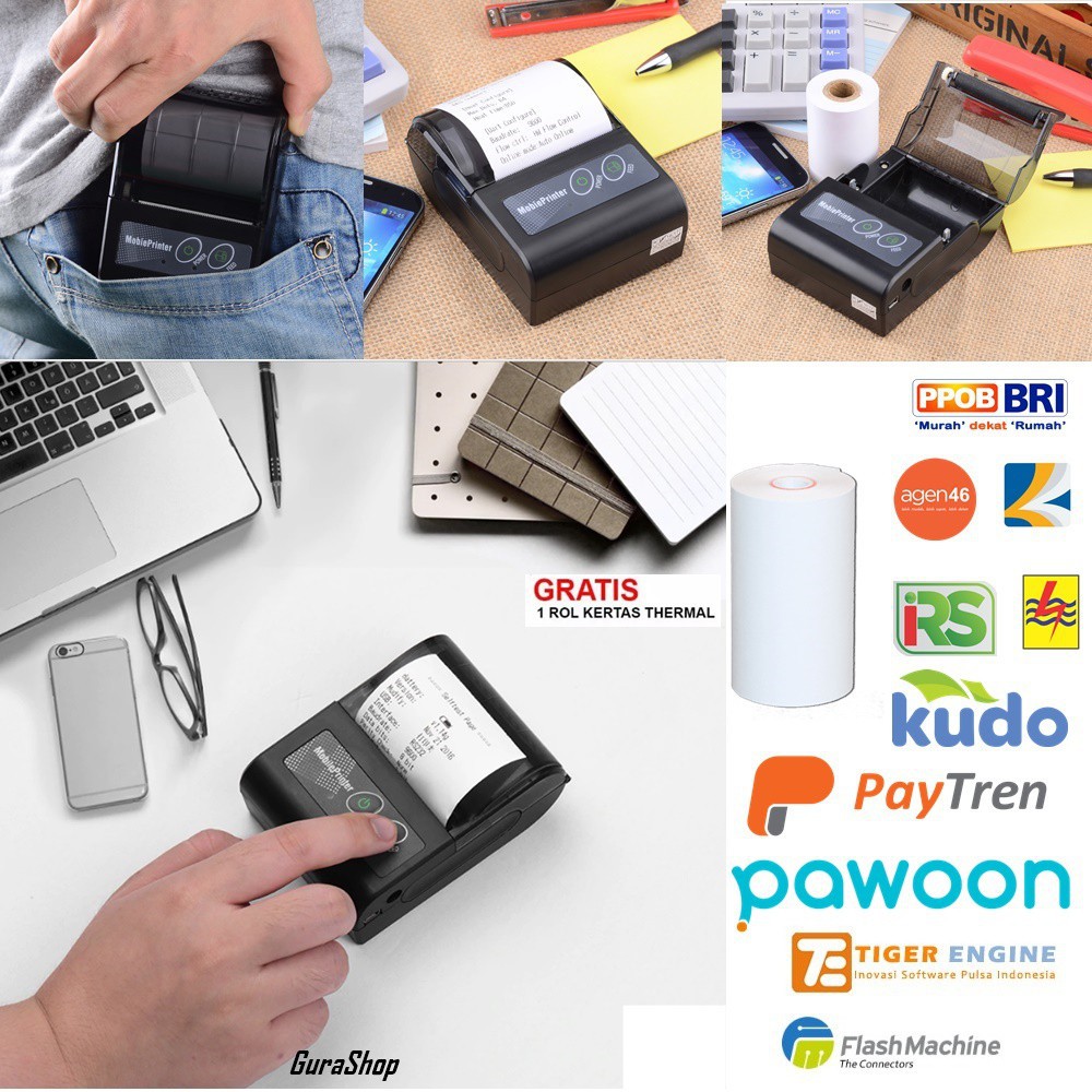 Printer Struk Nota Resi Shopee Barcode QR Code Kasir Mini Portable Bluetooth Wireless HP PC Thermal