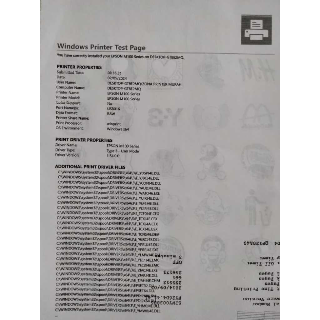 Printer Tangguh & irit Epson M100 Monochrome normal siap pakai
