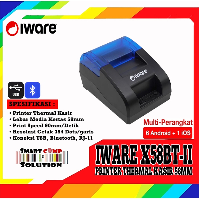Printer Thermal Kasir 58mm Iware X58BT II / X-58BTII / X58BT-II USB Bluetooth Support Android iOS