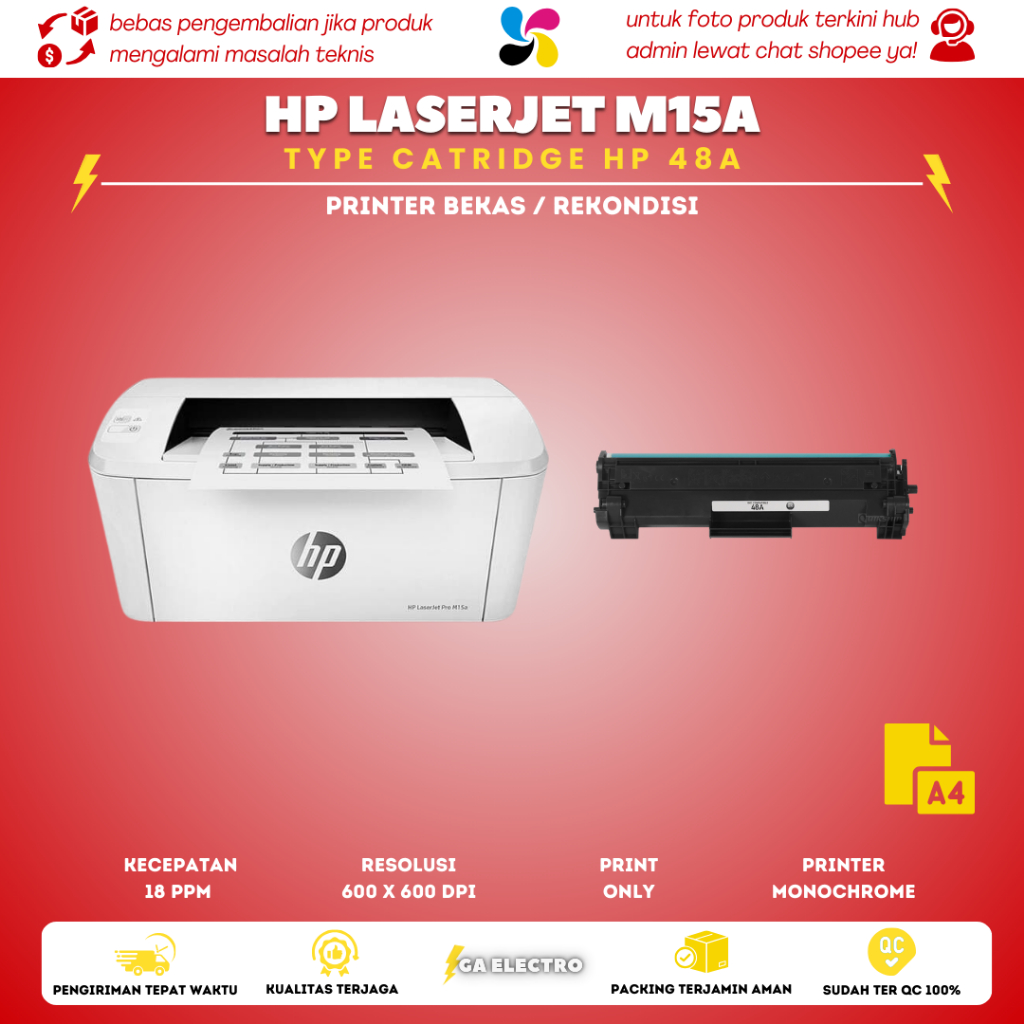 Printer hitam putih Hp Laserjet M15a second siap pakai