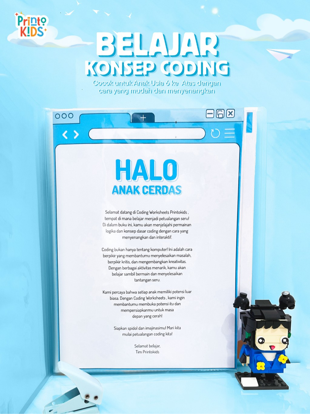 (40 Hal) Buku Coding Anak 3 4 5 6 Tahun Wipe & Clean Buku Aktivitas Anak, Belajar Logika + 2 Spidol