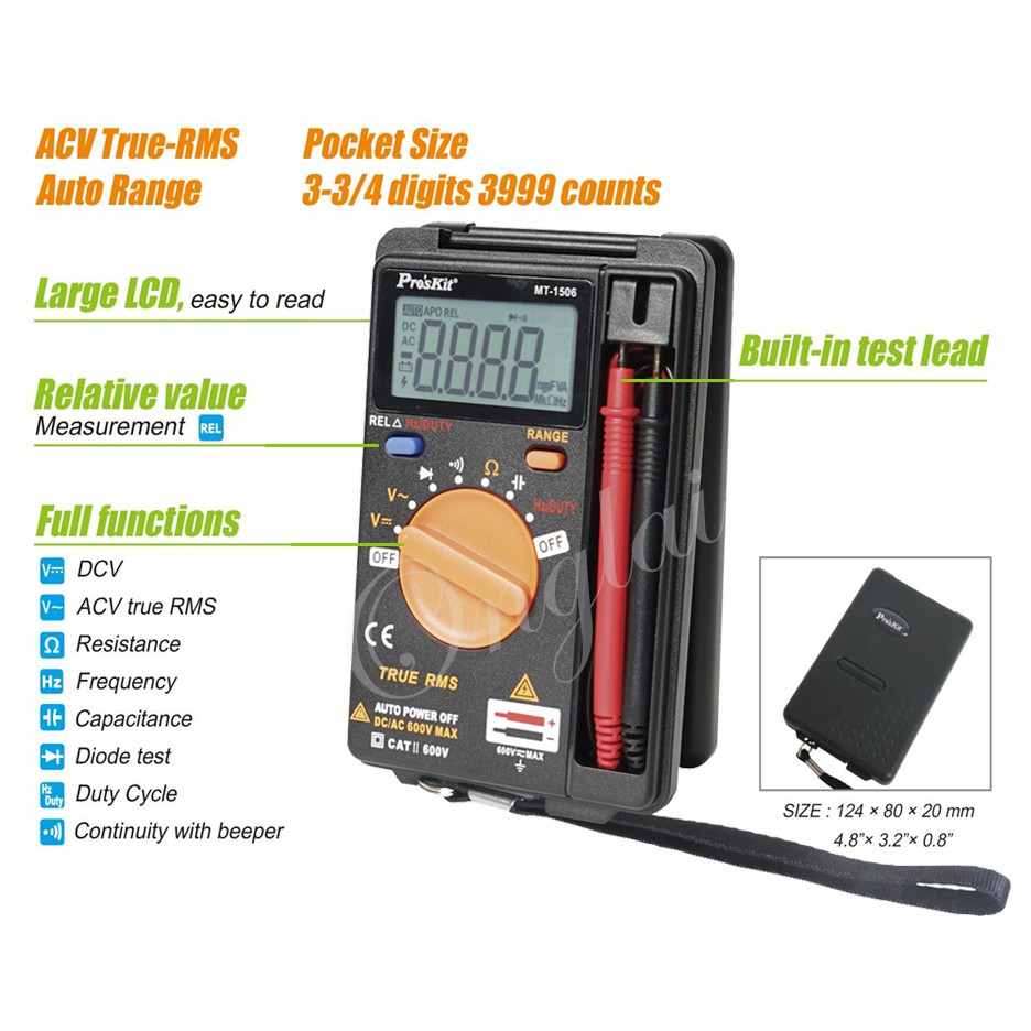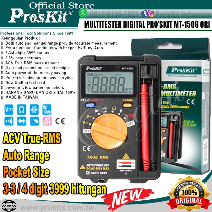 Pro'sKit - Multitester Digital Auto True Range Rms Pro'sKit MT-1506 Multimeter / Avometer Pocket Ori