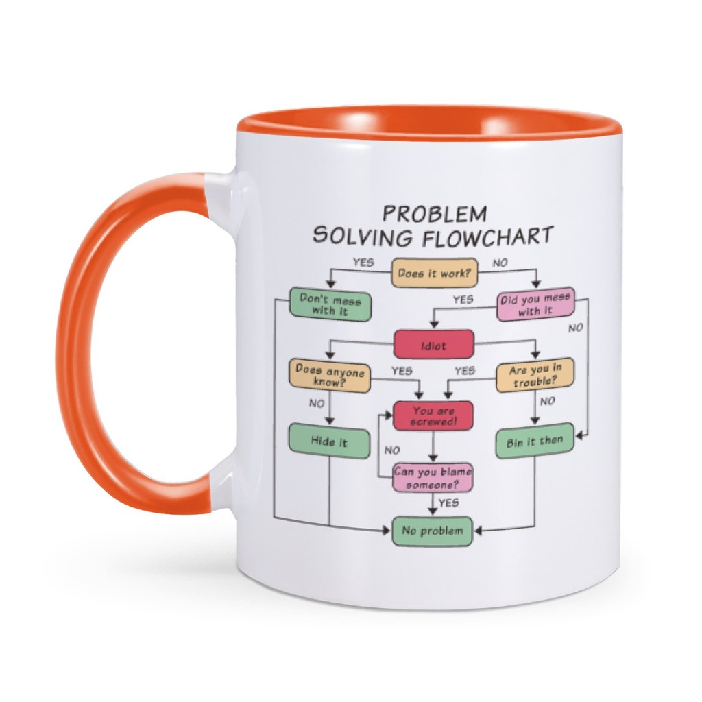 Problem Solving Flowchart Coffee Mug Funny Coworker Colleague Boss Gifts Desk Decor 11 oz Ceramics Home Office Tea Water Cup