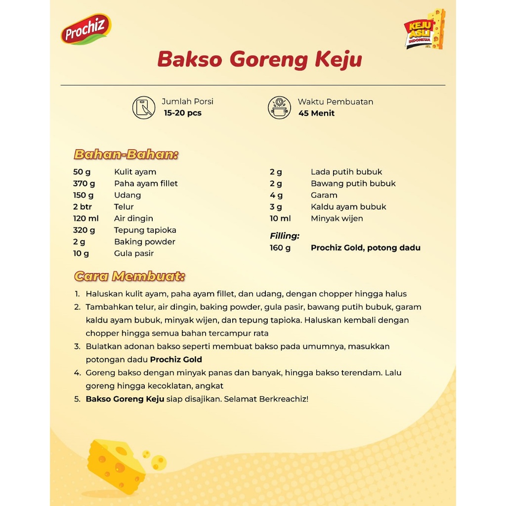 Prochiz Gold Cheddar / Keju Cheddar Olahan / Keju Parut 160gr