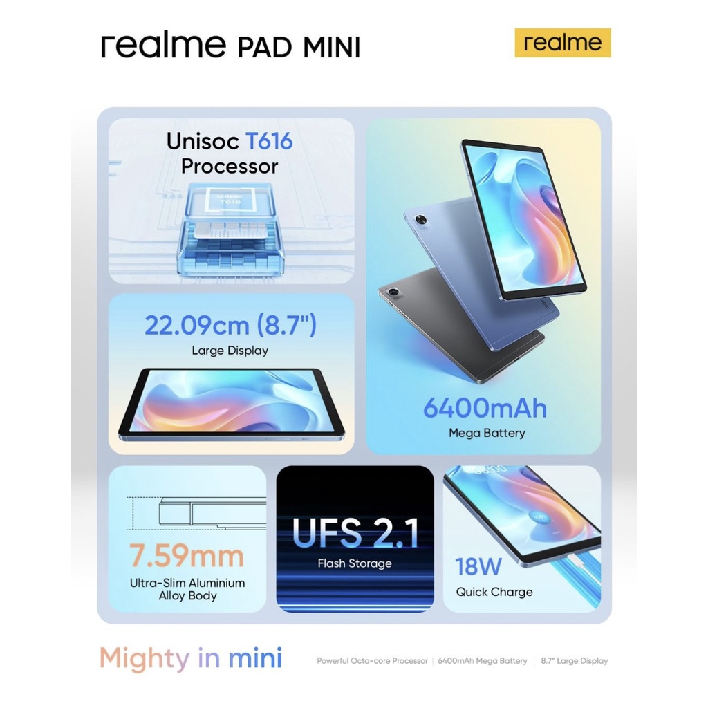 Produk Baru - Realme Pad Mini Ram 4GB + 64GB Rom - New Original Garansi Resmi Nasional - Tablet Gaming Tab - Warna Grey Blue Hitam Biru Internal 4/64 3/32 3GB 32GB 3 4 32 64 GB Wifi Only LTE SIM Card - Promo Harga Toko Grosir Murah Kota Medan