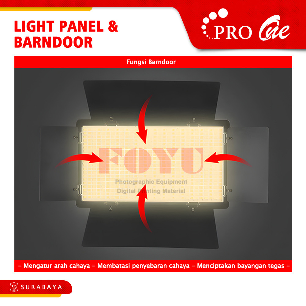 Pro One LED Light Panel With Barndoor 36 65 85 Watt Lampu Studio MUA Makeup Konten Kreator Foto Video PV-36B PV-65B PV-85B