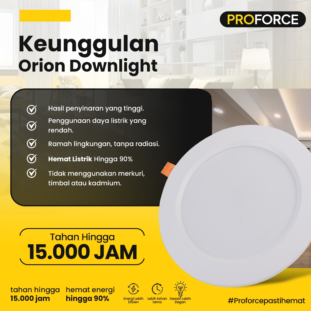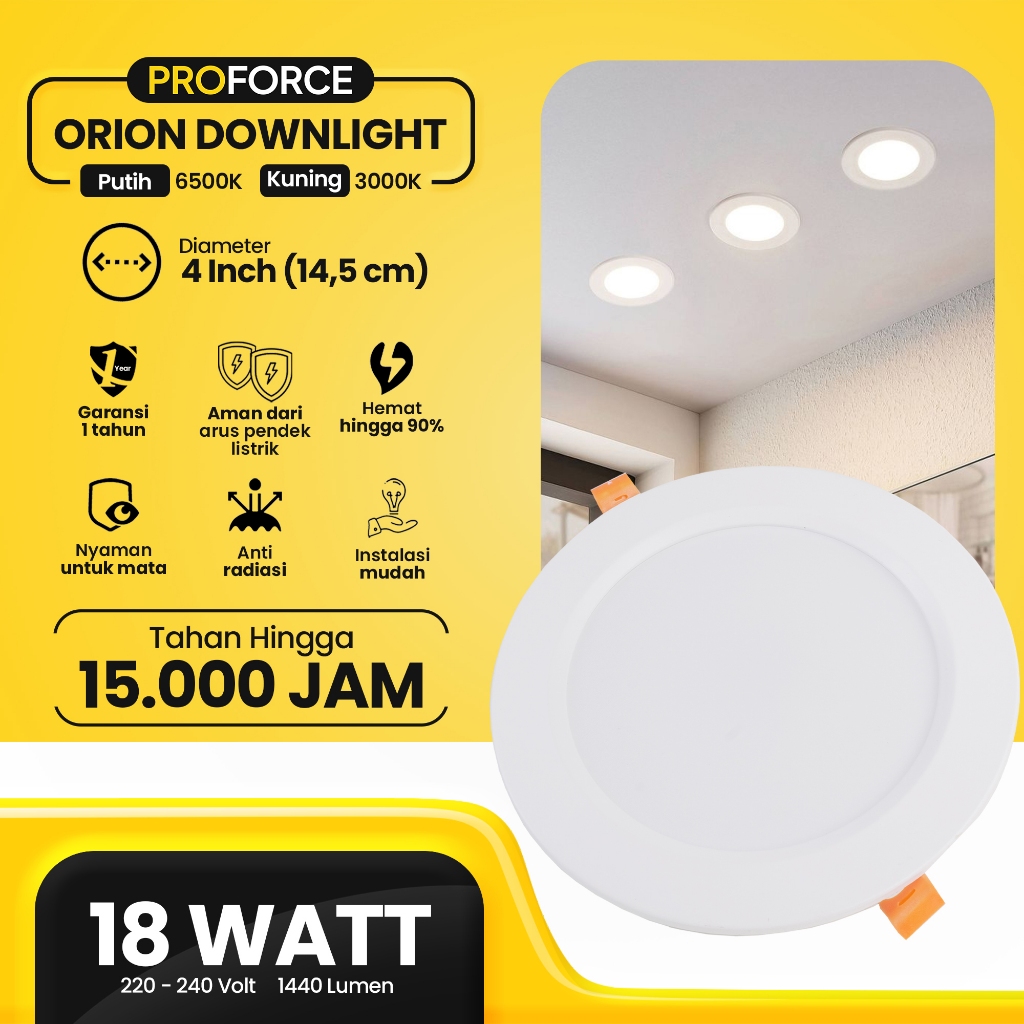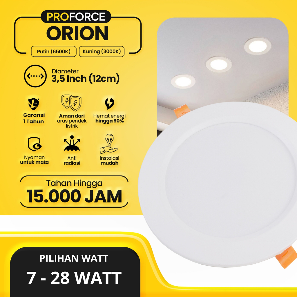 Proforce Lampu Downlight Panel Plafon LED Warna Cahaya Putih dan Kuning Orion Garansi Resmi 1 Tahun SNI 7 Watt 12 Watt 18 Watt 24 Watt 28 Watt Bukan Philips Panasonic In Lite Surya Luby