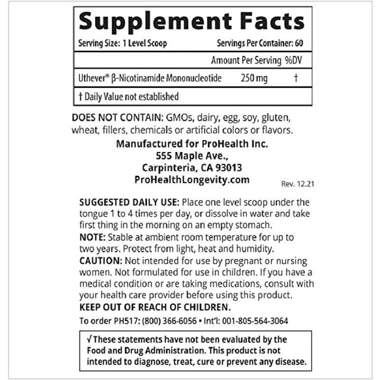 Prohealth NMN Pro Pure Nicotinamide Mononucleotide Powder 15 g / 30 g