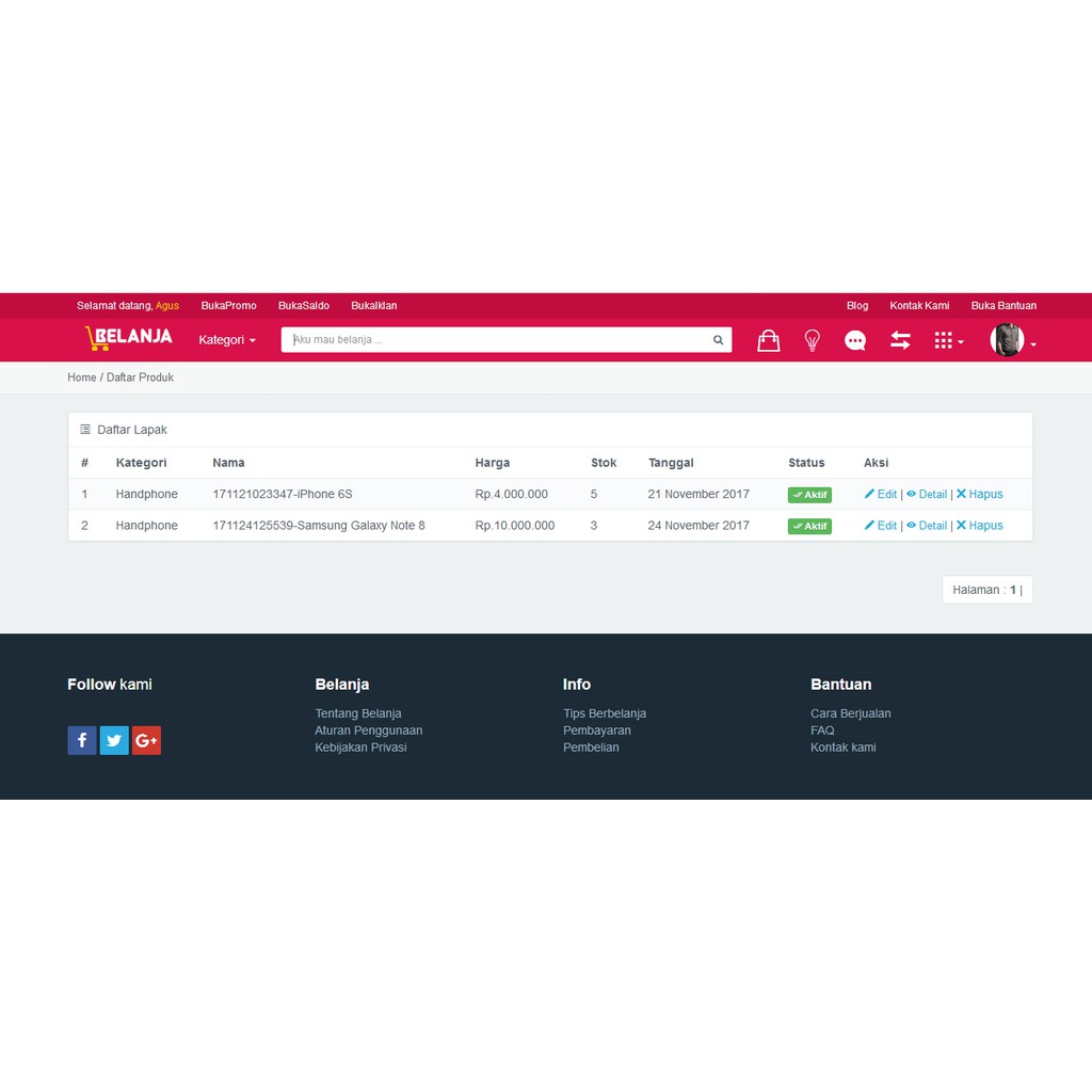 Project Aplikasi Source Code E-Belanja Marketplace Jual Beli Online
