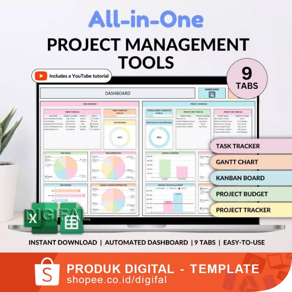Project Management Tool for Small Business Project Planner Task Tracker To-Do List Template Gantt Chart Business Planner Kanban Board Excel