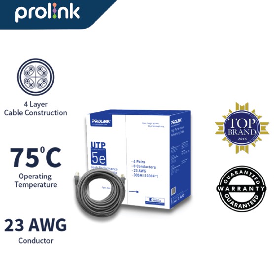 Prolink Copper UTP Kabel LAN CAT5e 305 Meter l 1000FT l Fluke Pass l Gray Color