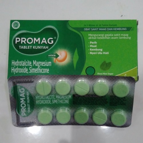 Promag Tablet 1 Blister Isi 10 Tablet Obat Sakit Maag Dan Kembung - Kemasan Baru