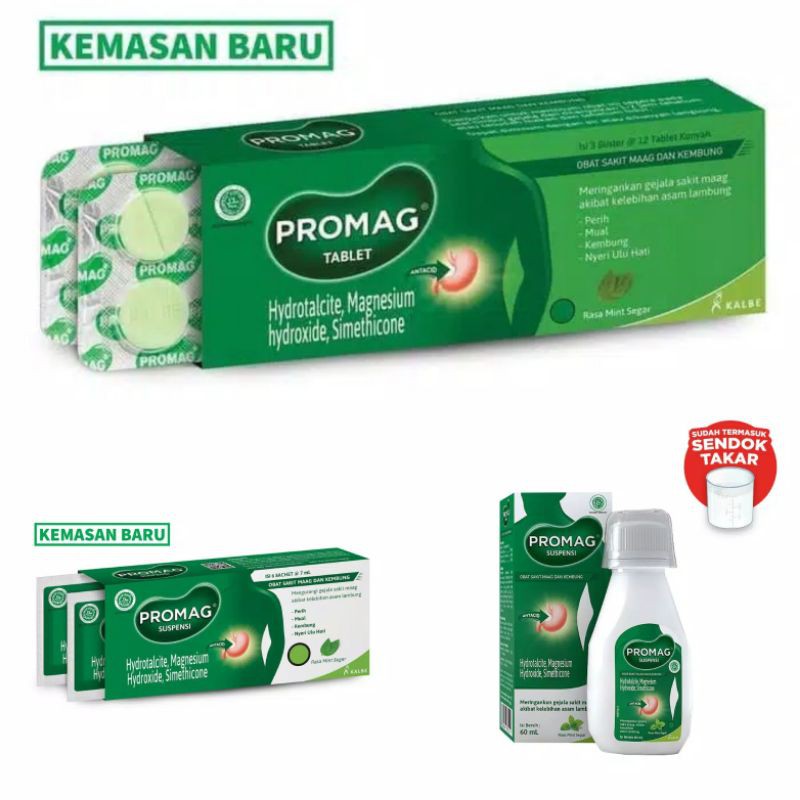Promag Tablet 1 Strip 12 Tablet / Promag Suspensi Botol 60ml / Promag Cair Sachet isi 6 @ 7ml