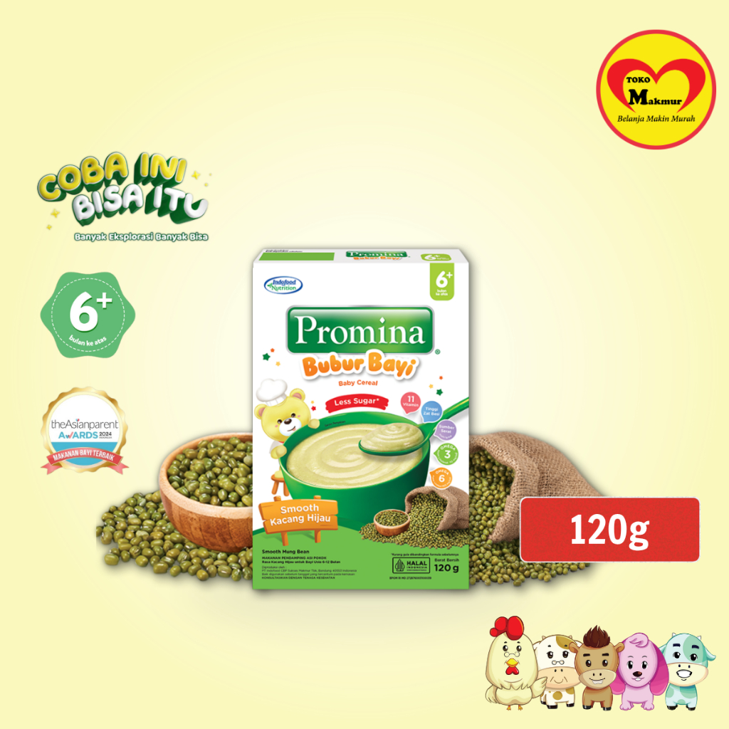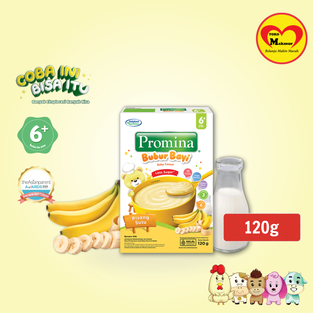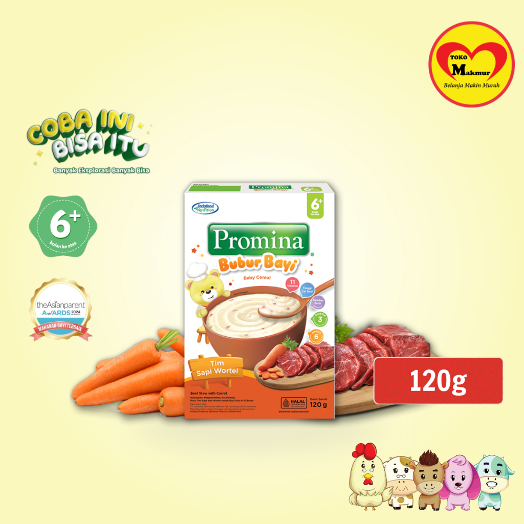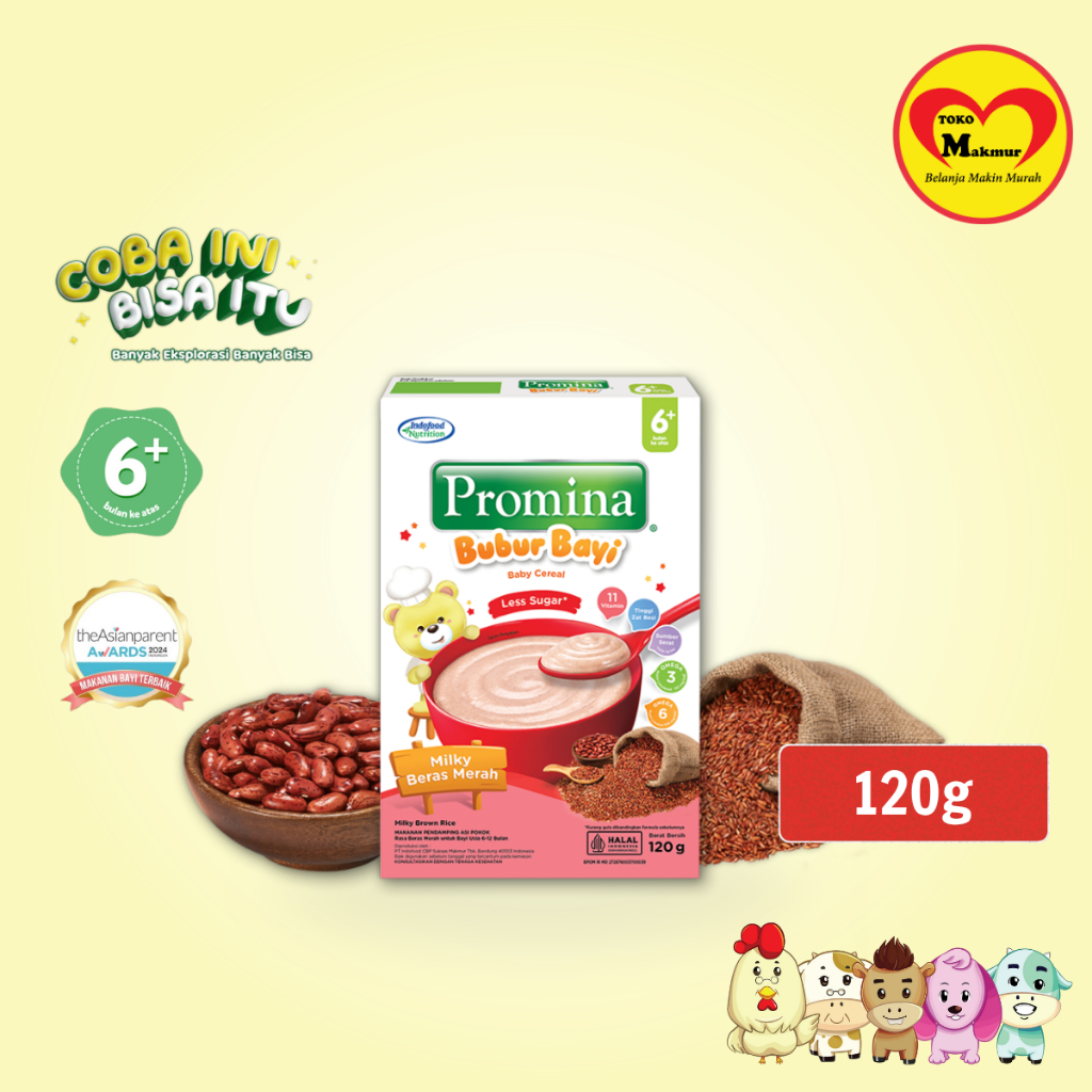 Promina Bubur Bayi 6+ Ayam Kampung Brokoli Keju / Beras Merah / Kacang Hijau / Pisang Susu / Salmon Labu Madu / Tim Sapi dan Wortel 120gr / Toko Makmur Pondok Jati