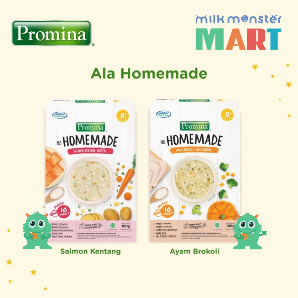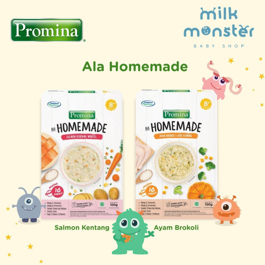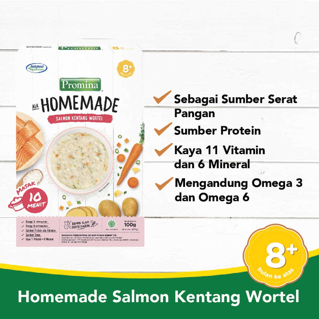 Promina Homemade 8+ Bubur Salmon Kentang Wortel, Ayam Brokoli Labu Box 100 g / Bubur Bayi