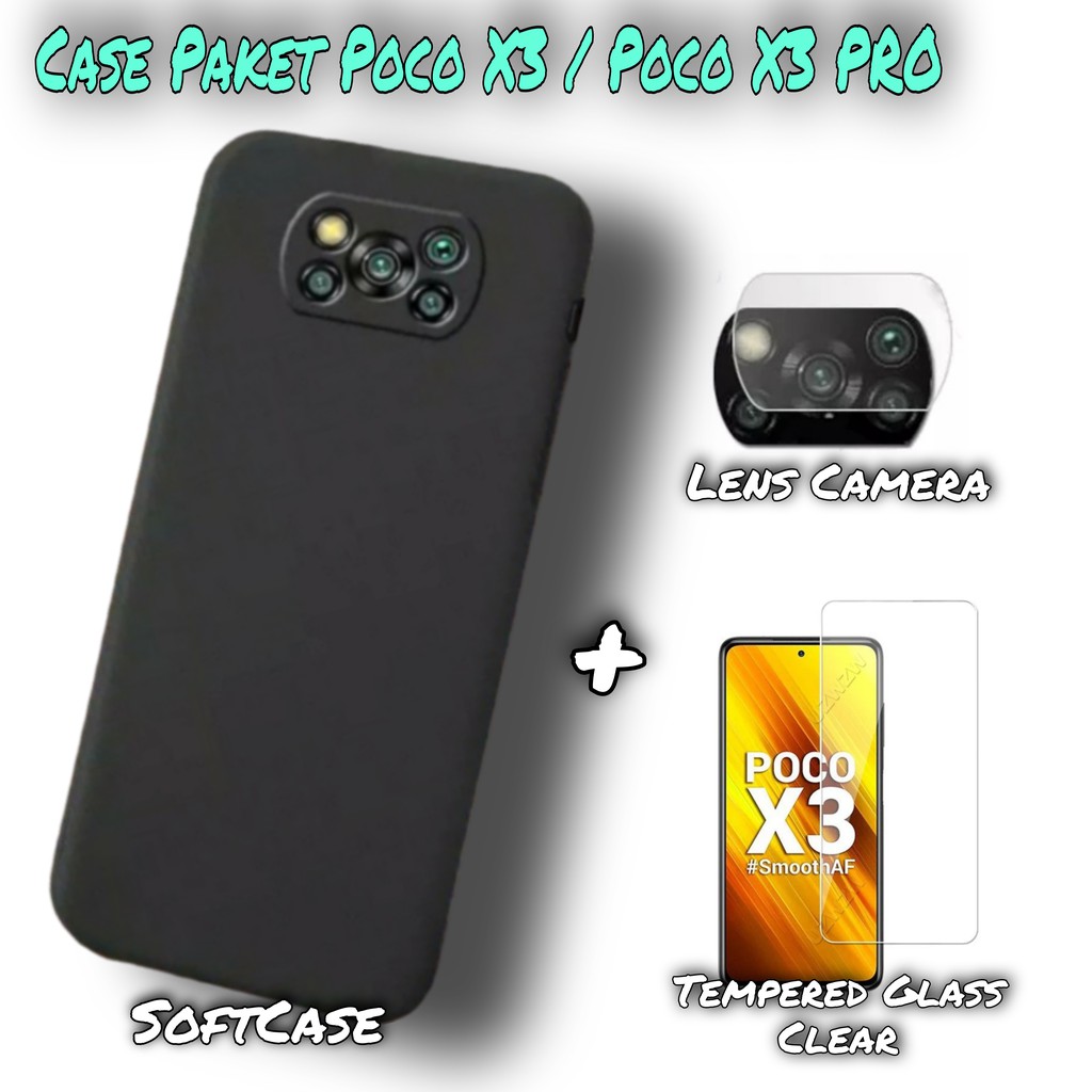 Promo 3in1 - Soft Case Poco X3 / Poco X3 PRO Tempered Glass Screen Protector + Back Camera Protector
