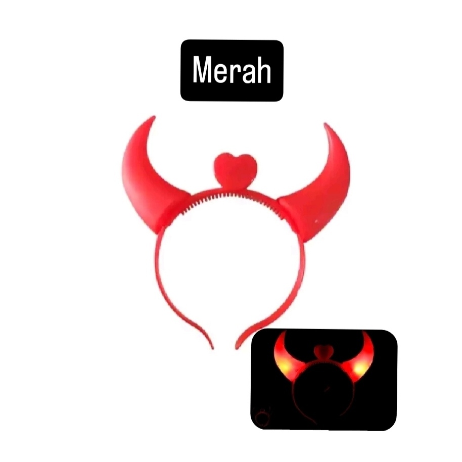 Promo Bando Tanduk Devil LED/Bando Pesta Halloween LED Bisa Nyala