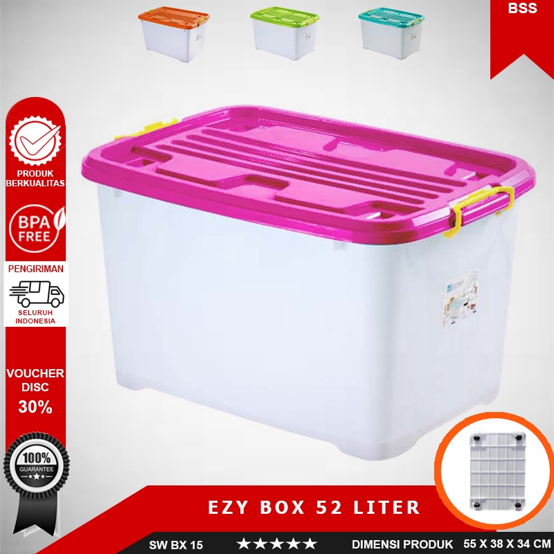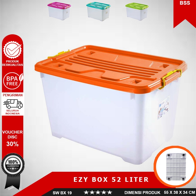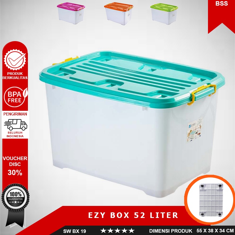 BOX CONTAINER 52 LITER Ezy isi 6 PCS | Kotak Penyimpanan Barang Rumah Tangga Serbaguna | Dengan Roda + Bahan Plastik Tebal Kuat - ID.BSM