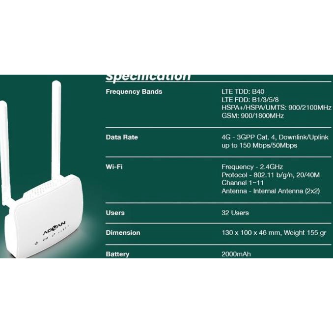 Promo Bulan Ini Router 4G Modem Wifi Advan Cpe Router Start Unlock (Battery 2000Mah) - - Free Orbit