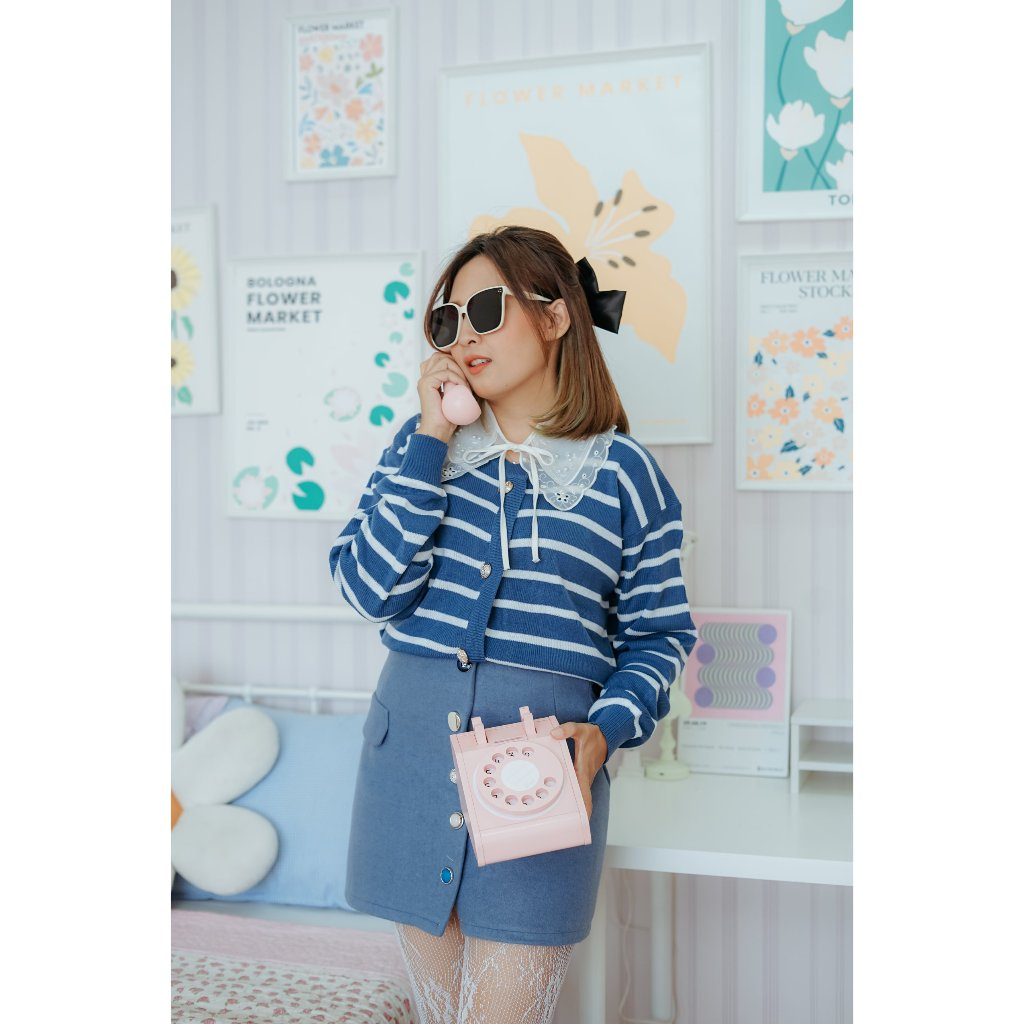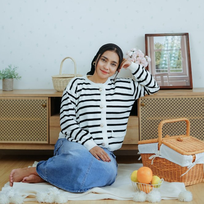 Haylook.id Lalisa Knit Cardy Cardigan Stripe Wanita Bahan Rajut Premium Tebal Korean Style