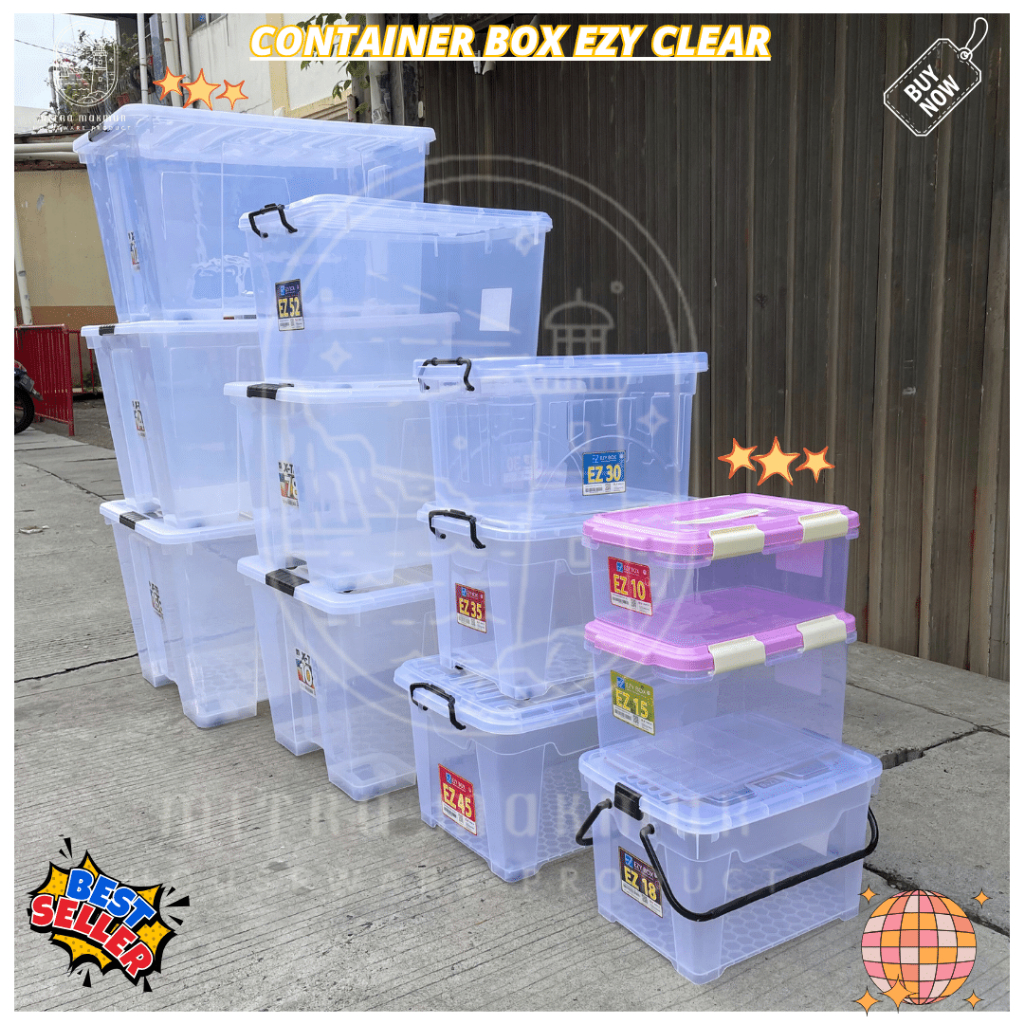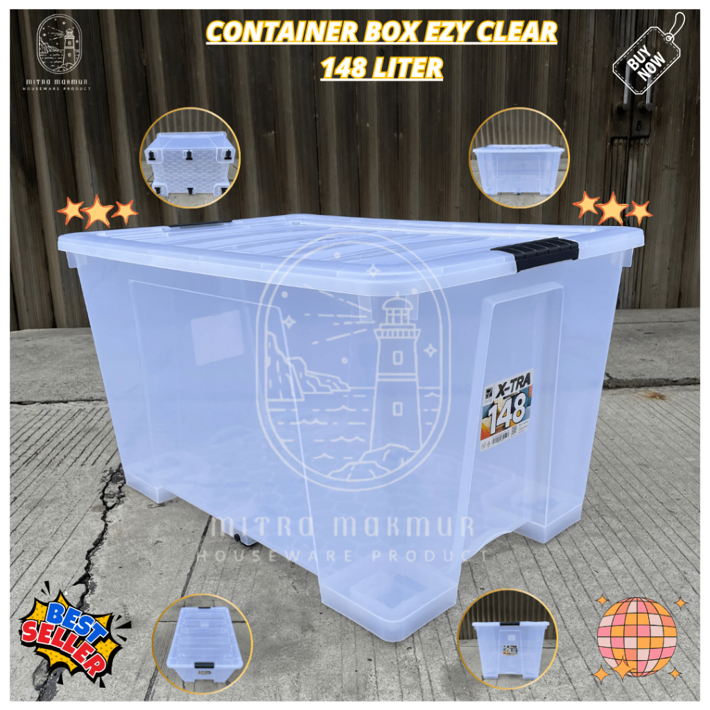 Promo Container Box Ezy Clear Kontainer Box Ezy Bening 128 148 168 Liter Box Penyimpanan Roda Murah