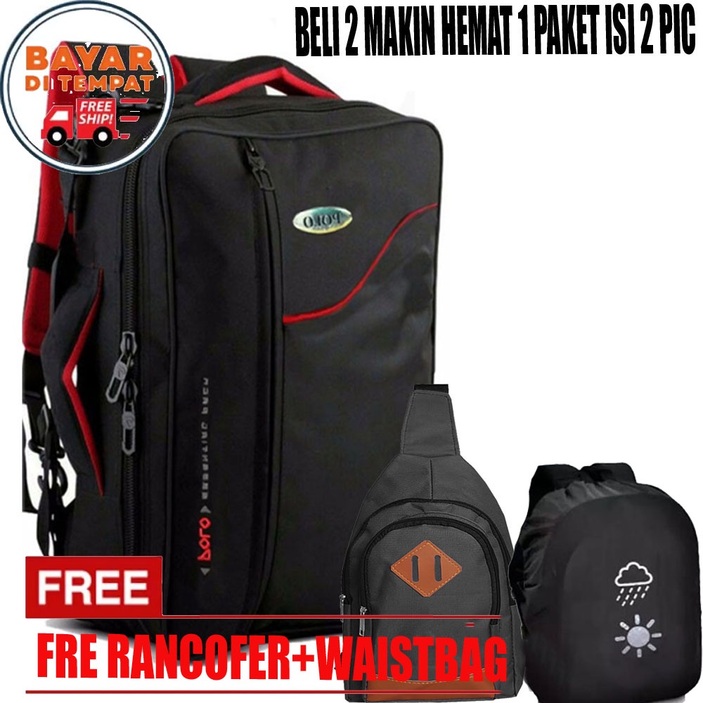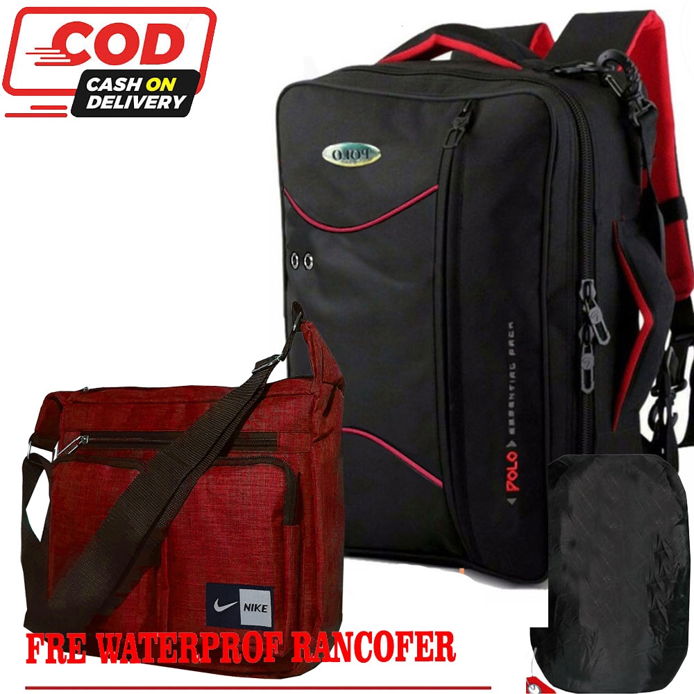 Promo Cuci Gudang Ransel / Slempang Tas 3in1 Polo Tas MAP HVS Tas Multifungsi Pria wanita Polo Black Fre Rancofer+Waistbag Black