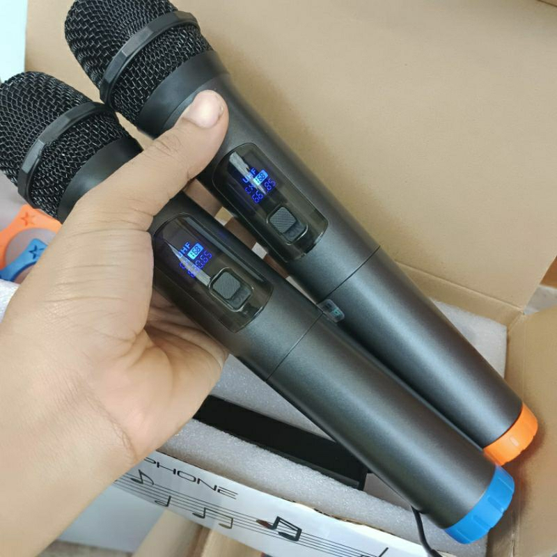 Promo MIC wireles DOUBLE HITAM microphone bluetooth dengan Receiver System 2mic wireles