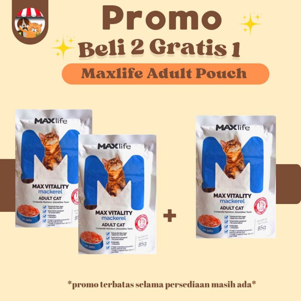 Promo Makanan Kucing Max Life Cat Beli 2 Gratis 1 - MaxLife Adult Pouch