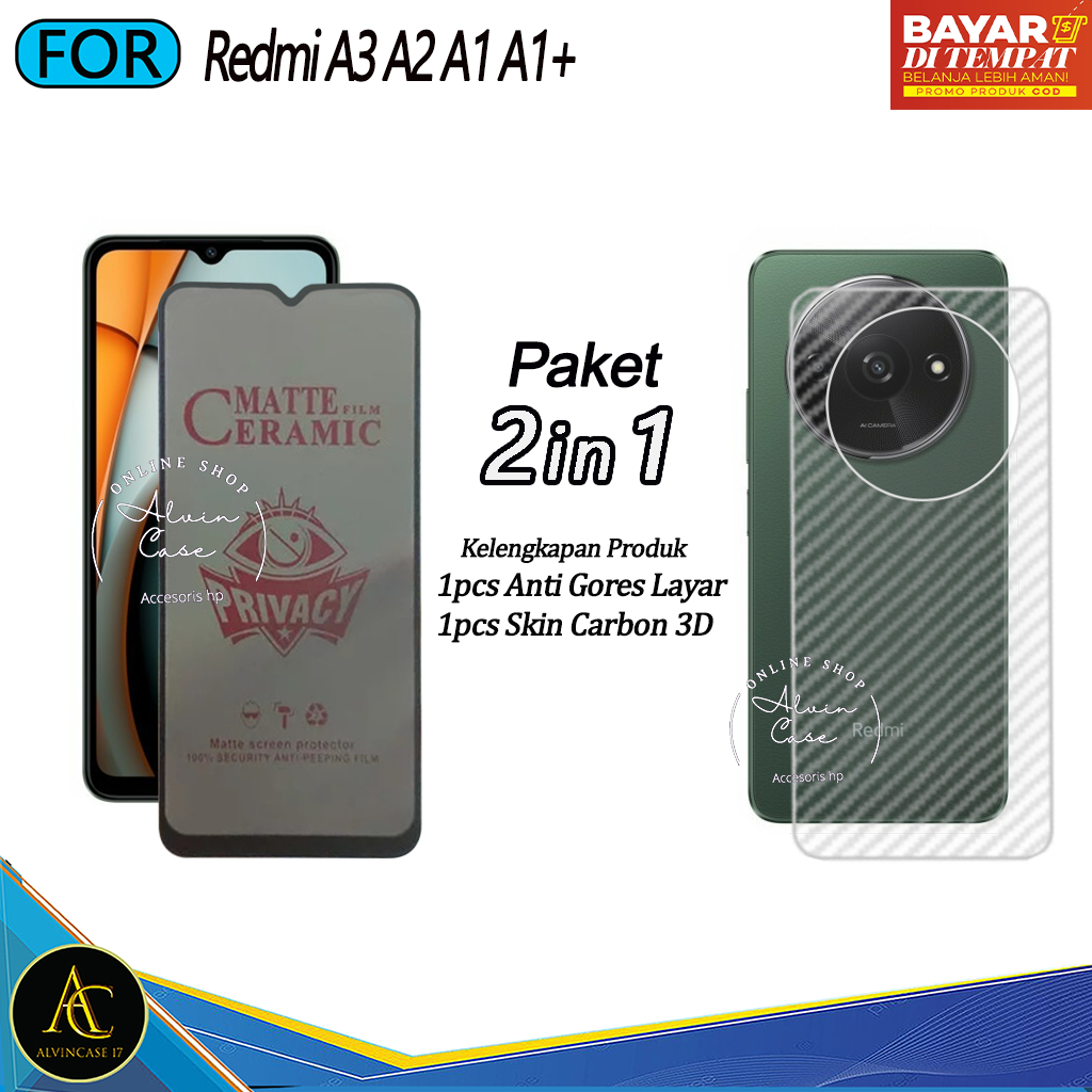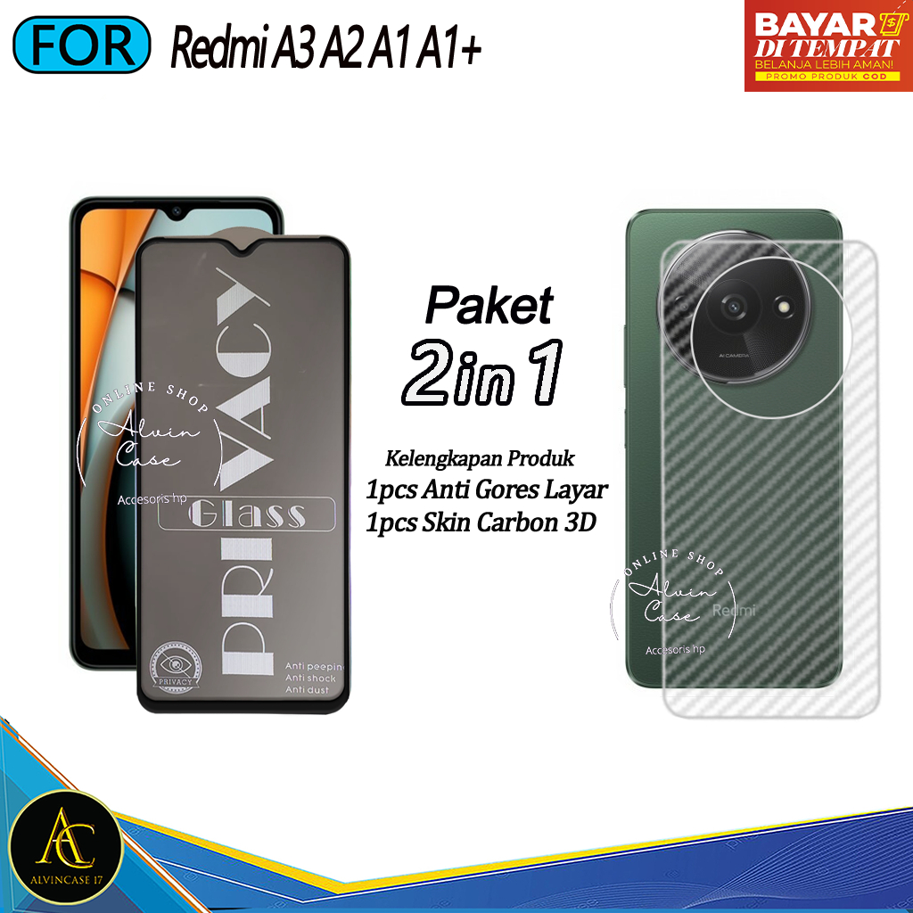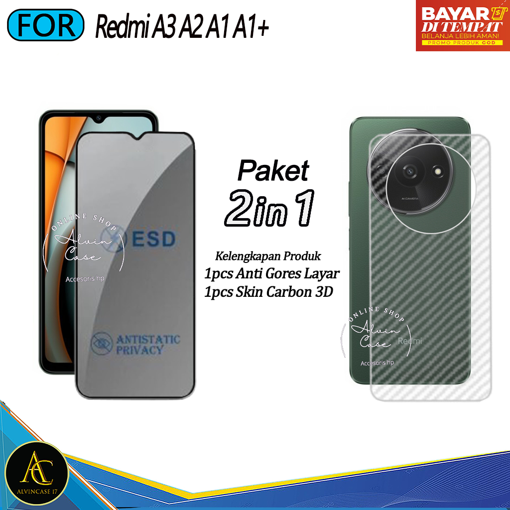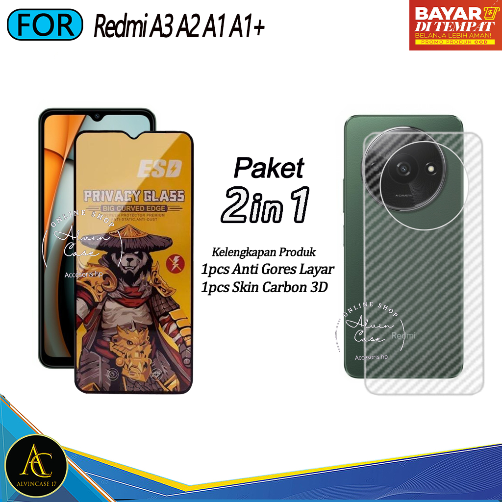 Promo Paket 2IN1 Tempered Glass Esd Spy Redmi A3 A2 A1 A1+ Anti Spy Full Cover