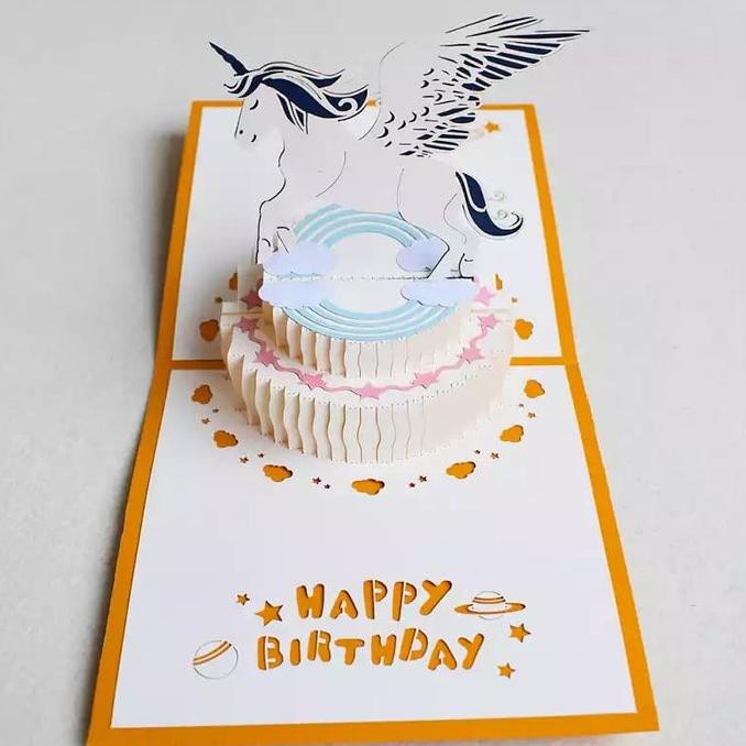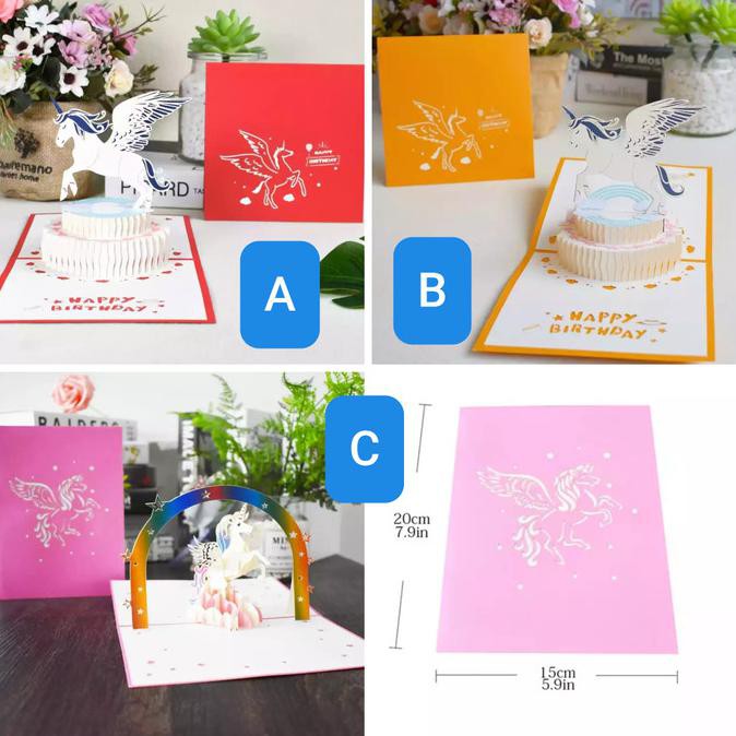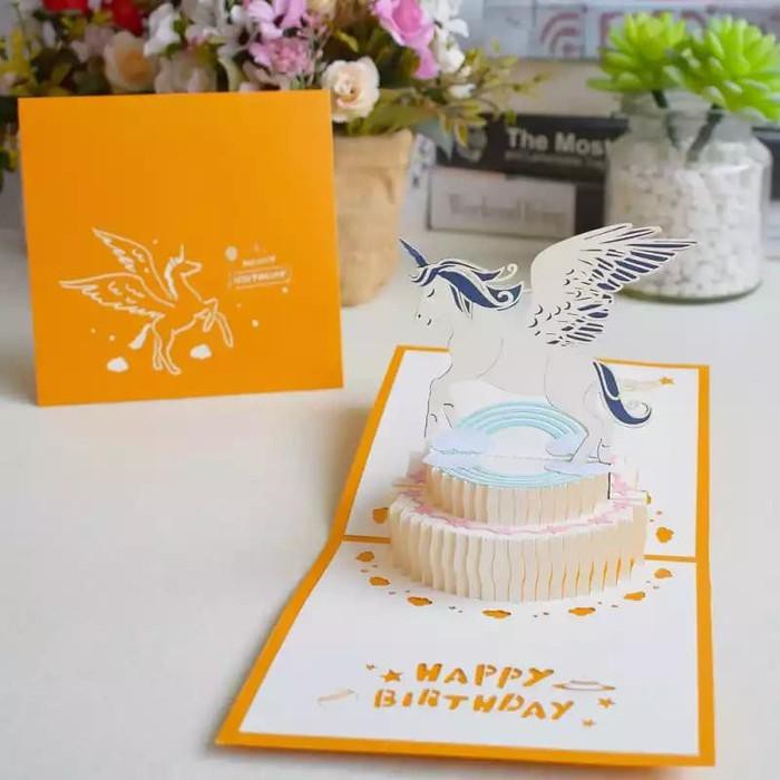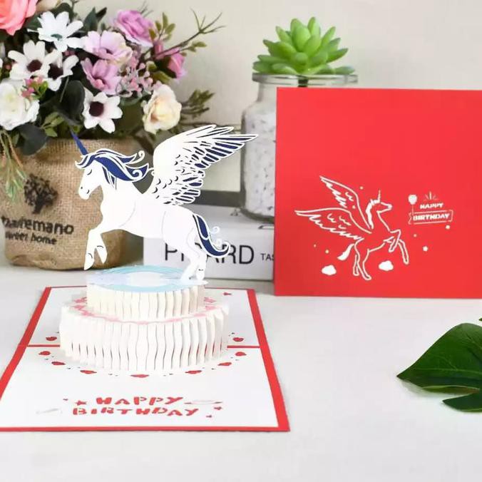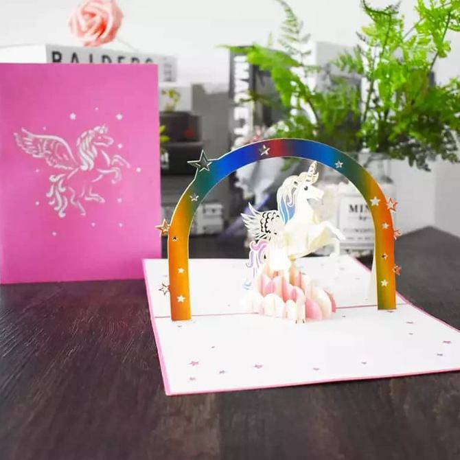 Promo Terbatas - Kartu Pop Up Kartu 3D Kartu Ucapan Pegasus Unicorn Hadiah Unik