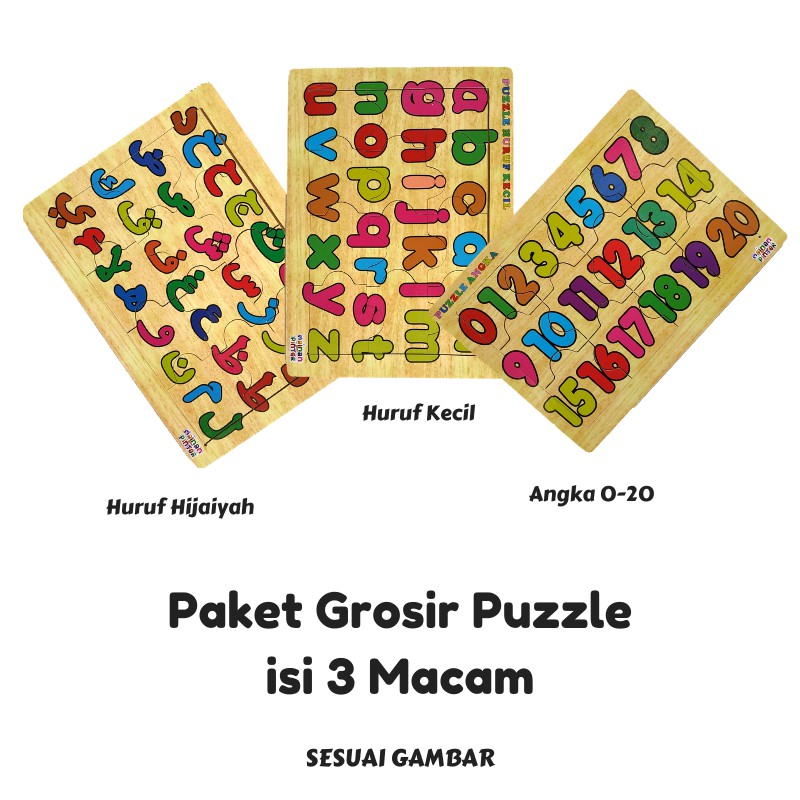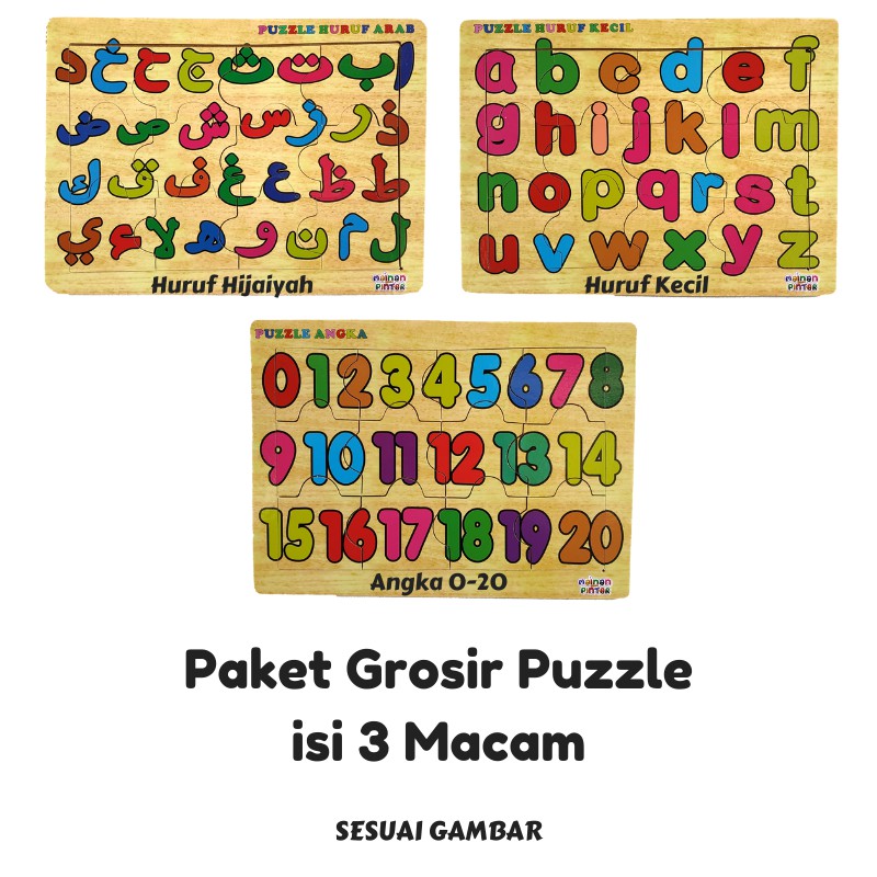 Promo Terlaris Isi 3 Puzzle / Paket Puzzle Kayu Jigsaw / Huruf Hijaiyah Huruf Kecil Dan Angka