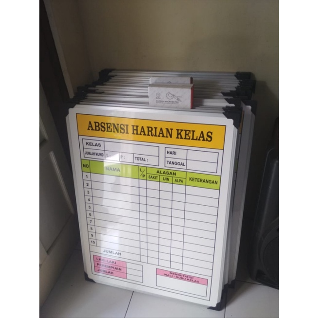 Promo papan Absensi Harian Kelas ukuran 60 x 80 cm. papan absen multiplek alumunium. Ready Stock Best seller