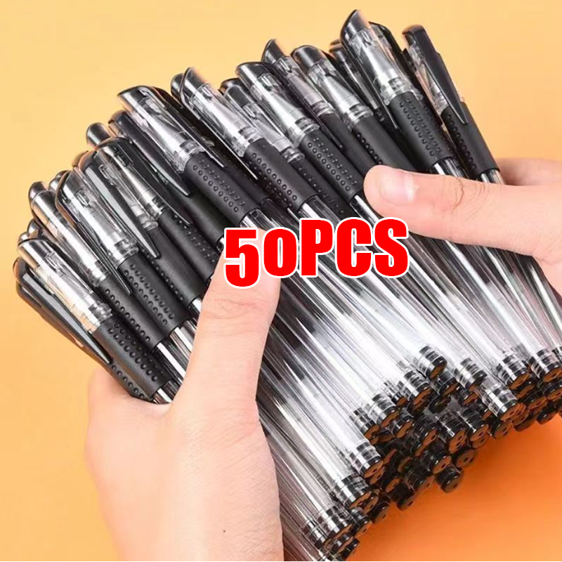 Promosi Terbatas !!! 50pcs Pulpen Pena Pulpen 1 Pack Kapasitas besar dan tahan lama / 0.5mm Pulpen Gel / Pulpen Murah / Pen Bolpoin / Pena Standar / Simple School Stuff barang aesthetic
