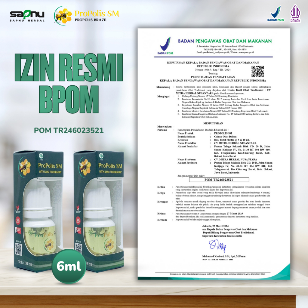 Propolis SM Brazil Asli 100% Original Dari Ekstrak Propolis Brazilian With Nano Technology - Obat Herbal Propolis SM Brazil Isi 6 ML Multikhasiat - Obat Tetes Herbal Multikhasiat