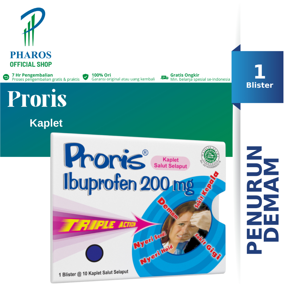 Proris Kaplet Ibuprofen Triple Action/Obat Sakit Kepala/Obat Demam/Pereda Nyeri