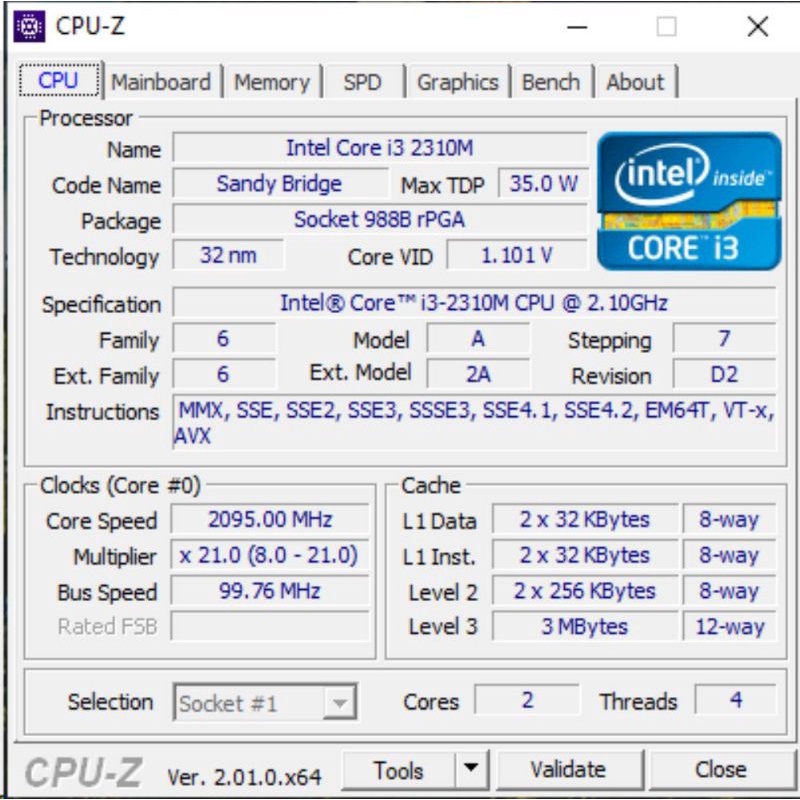 Prosesor Laptop Core i3 Gen 2 Seri 2310M