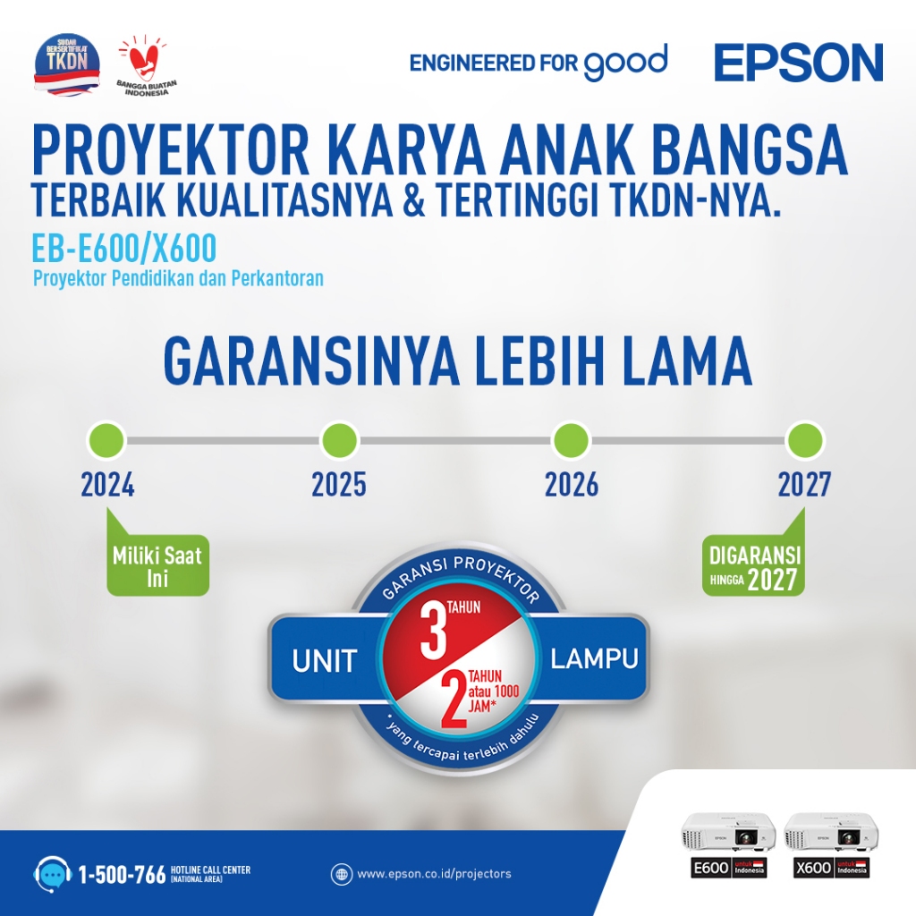 Proyektor EPSON EBX600 EB X600 (PENGGANTI EBX500) XGA 3LCD 3600 Lumens TKDN Resmi
