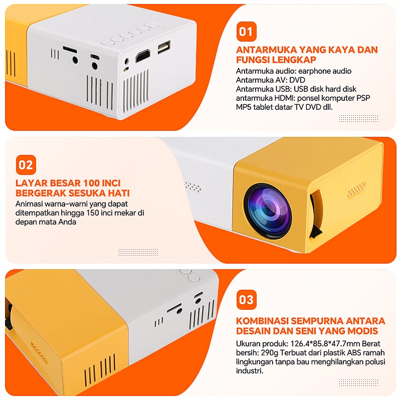 Proyektor LED 1080P Ultra HD Kecerahan Tinggi Mini Home Theater Portabel Mendukung Proyeksi dari Ponsel Proyektor 3D Mini Cocok untuk Kamar Tidur/Kantor/Rapat Model: YG300